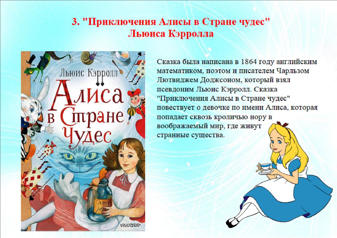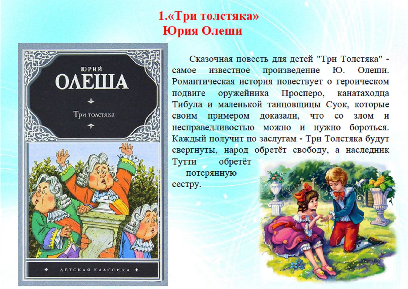 Самый распространенный жанр детской литературы — это сказка, сказок великое множество на любой вкус, от небольших стихотворных и народных до многотомных произведений Александра Волкова и Астрид Линдгрен. Вместе с персонажами ребенок получает жизненный опыт, разбирается, что хорошо и что плохо, что полезно, а что делать опасно.