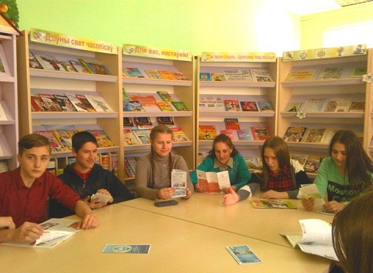 В рамках республиканской профилактической акции «Дом без насилия» в районной детской библиотеке состоялся час размышлений с элементами тренинга «Мир без насилия – вместе мы справимся». В ходе мероприятия с учащимися закрепили знания о правах ребенка, рассмотрели и обсудили различные ситуации. Вниманию ребят был продемонстрирован видеоролик «Воспитание без насилия», акнижная выставка «Современное общество – современные проблемы» познакомила с книгами, которые имеются в фонде библиотеки на данную тему. Каждому читателю была вручена памятка «Стиль жизни вашей семьи – здоровье!».