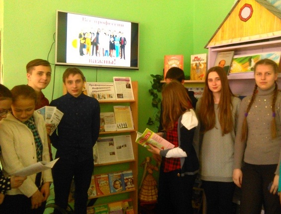 С целью эффективной профориентационной работы работники городских библиотек сети посетили сельские школы и провели уроки профориентации «Моя профессия — библиотекарь». Ребята узнали, что современный библиотекарь — это человек, идущий в ногу со временем, использующий весь спектр новых информационных технологий, легко работающий с электронными ресурсами и технологиями. Значение библиотеки постоянно возрастает и определяется не столько количеством фонда, сколько возможностями библиотеки как можно быстрее и полнее предоставить информацию по затребованному вопросу. Поэтому библиотекарю просто необходимо шагать в ногу со временем и постоянно развиваться. Ребята задавали вопросы, интересовались перспективами профессии. В завершение мероприятий всем были вручены информационные буклеты «Профессия — библиотекарь».