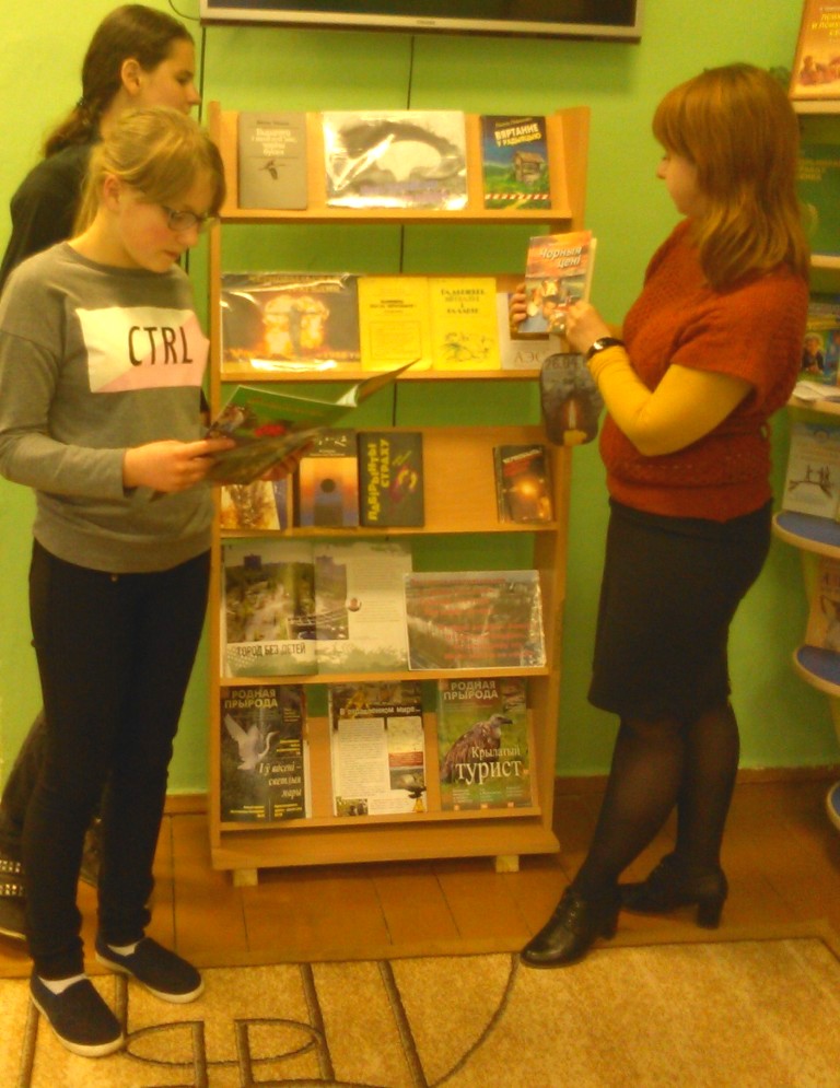 В районной детской библиотеке в Международный день Земли, состоялся экологический час «Через книгу – любовь к природе». Особое внимание было уделено тому, что наши поэты, писатели очень интересно, живо, нежно описывают и муху, и комара, и паучка. В ходе беседы были представлены книги писателей: М. Пришвина, В. Бианки, Н. Сладкова, Г. Скребицкого. Ребятам с большим интересом отвечали на вопросы викторин: «Угадай, кто это?», «Отгадай-ка», «Наши деревья». Так же был продемонстрирован видеоролик «Экология Земли», из которого присутствующие узнали, какие проблемы существуют из-за загрязнения окружающие среды, и чем мы жители планеты Земля можем помочь, чтобы наша природа стала чистой, красивой и цветущей. Закончилось мероприятие обзором у книжной выставки «Мы твои друзья, Природа!».