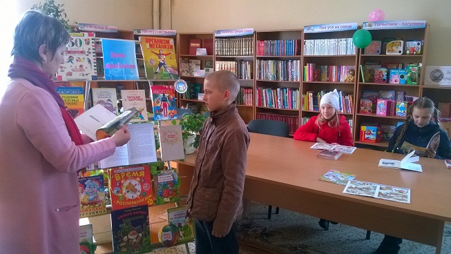 Занимательный урок здоровья «В стране здоровячков» состоялся в городской библиотеке № 1. Ребята совершили путешествие в удивительную страну Здоровья. Во время путешествия ребята узнали много интересного и полезного о том, как сохранить своё здоровье, не болеть. Останавливаясь на станциях «Отгадай-ка», «Загадочная», «Здорового питания», «Культурная», ребята принимали участие в конкурсах и викторинах «Пословицы о здоровье», «Съедобное-несъедобное», «Да-нет». Также в гости к ребятам пришел Доктор Неболейка, который рассказал о витаминах, а также дал свои рекомендации о здоровом образе жизни. В завершение мероприятия библиотекарь читального зала провела обзор литературы «Здоровым быть — в радости жить!».