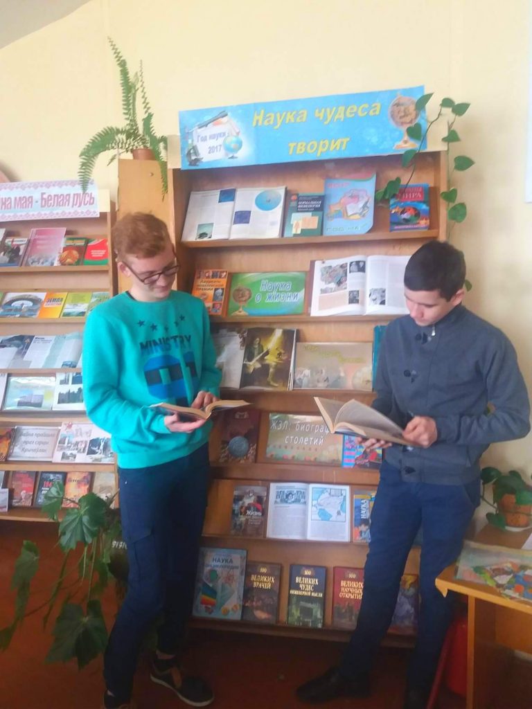 В рамках Года науки в городской библиотеке №1 состоялся информационный час «Будущее науки за молодежью». Библиотекарь рассказала ребятам, как много интересного есть в окружающем мире, каким захватывающим может быть поиск ответа на самый простой вопрос, как многообразен мир науки, как ждёт он наших открытий! Ребята узнали об открытиях белорусских ученых, да и просто самоучек. После беседы участники отвечали на вопросы интеллектуальной викторины-игры «Аукцион знаний». В завершении мероприятия состоялся обзор у книжной выставки «Наука чудеса творит».
