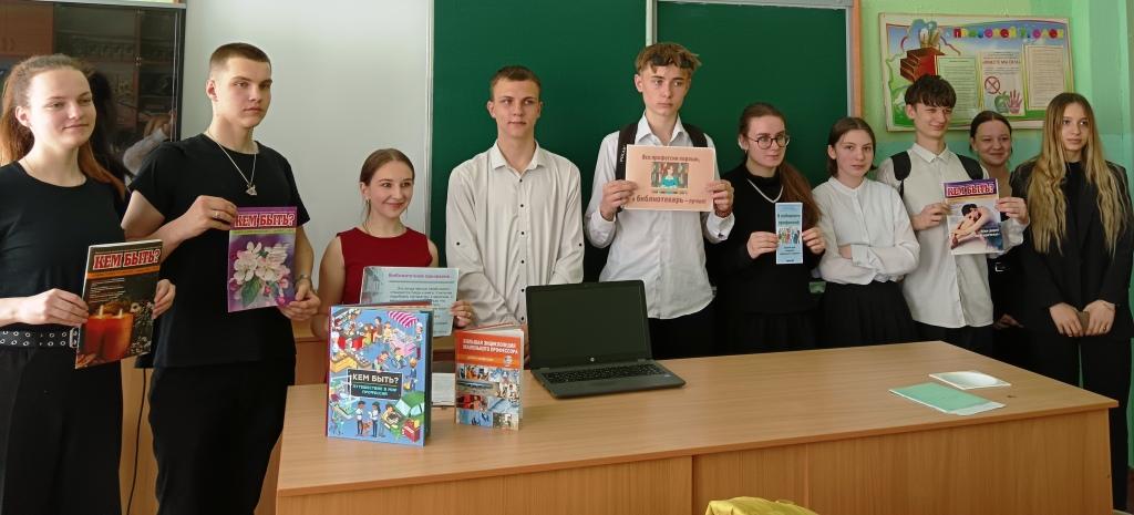 Выбор профессии – важный шаг в жизни каждого человека, но наиболее актуален он для старшеклассников, когда школа вот-вот останется позади, и нужно определиться, куда двигаться дальше. В рамках Декады профориентации «Выбирая профессию – выбираешь будущее» сотрудники городской библиотеки №1на базе ГУО «Средняя школа №8 г. Кричева» для учащихся 9 «Б» класса провели профориентационный час «Моё увлечение – моя профессия». В ходе мероприятия ребята узнали об основных моментах, на которые стоит обратить внимание при выборе будущей профессии. Старшеклассники отвечали на вопросы викторины «Угадай профессию», работали в группах по теме «Самые нужные профессии», «Самые модные профессии», «Самые забытые профессии». Для учащихся 8-х классов ГУО «Средняя школа №3 г. Кричева» городской библиотекой №1 был проведён урок профориентации «Библиотекарь – нужная профессия». Вначале мероприятия ребята вместе с библиотекарем совершили экскурс в историю возникновения библиотечного дела, познакомились с древними и современными библиотеками, посмотрели видеоролики «Выбор профессии – выбор будущего», «Кем быть». Мероприятия сопровождались просмотром слайд-презентаций «В мире профессий», «Моя профессия – библиотекарь», видеоролика «Выбор профессии – просто и сложно», обзором книжной выставки «Тебе, абитуриент».