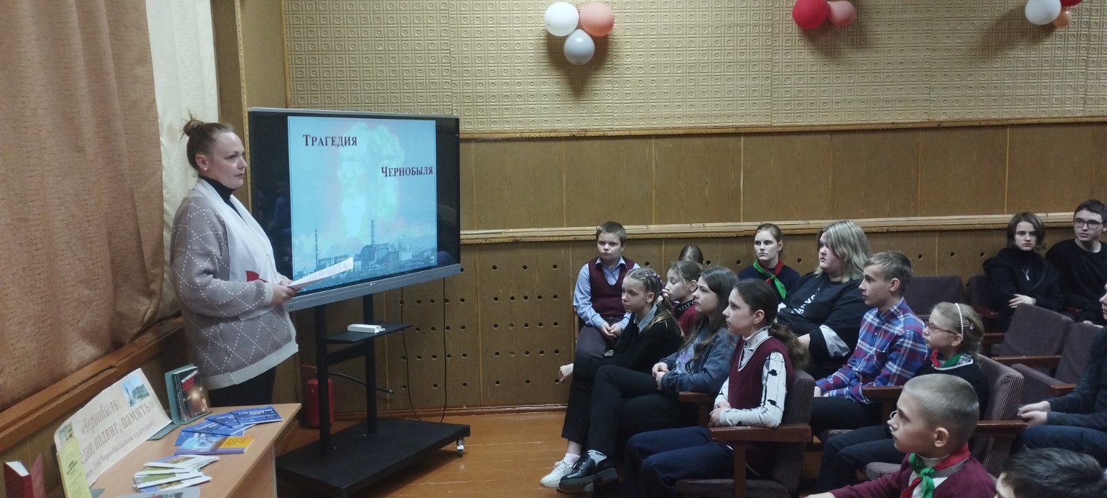 Чернобыль навсегда вошел в мировую историю, стал болью и горькой памятной датой для нескольких поколений людей. Накануне Дня Чернобыльской трагедии в городской библиотеке №2 прошёл экологический час «Чернобыль: горькая память и вечная боль. Мероприятие сопровождалось презентацией «Чернобыль: боль длиною в жизнь», из которой ребята узнали о масштабах трагедии, различных заболеваниях, вызванных радиацией, последствиях экологической катастрофы, о мерах по борьбе с радиационным заражением. В исполнении ведущих и детей прозвучали стихи и песни о чернобыльской катастрофе. Представленная на тематической выставке «Чернобыль – боль моей страны» литература, дала возможность более подробно узнать о предполагаемых причинах взрыва на АЭС, о мужестве и героизме пожарных спасателей.