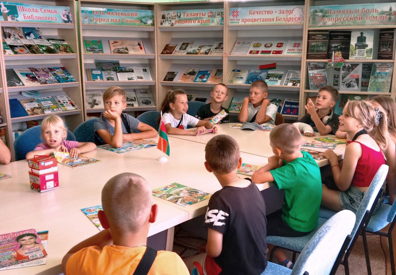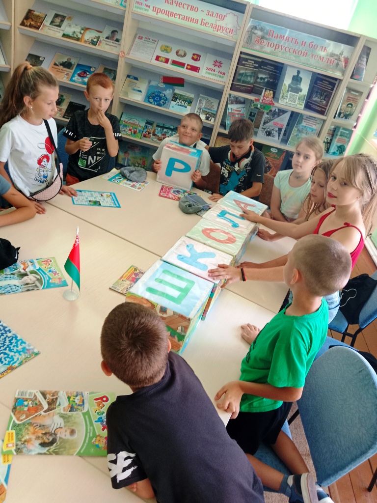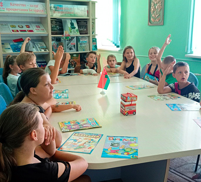 В этот день районная детская библиотека радушно принимала у себя ребят из оздоровительного лагеря ГУО «Костюшковичская средняя школа Кричевского района» на экскурсию по библиотеке под названием «Дом, где живут книги». Ребята совершили настоящее путешествие в мир книг: узнали о том, что означает слово «библиотека», познакомились с основными правилами библиотеки, узнали, как стать читателем библиотеки, вспомнили основные правила обращения с книгами. Ребята играли в игры «Да-Нет», «Собери пазл», отвечали на вопросы сказочной викторины «Угадай-ка сказку» и, конечно же, листали яркие красочные, еще не знакомые им, новые книги.