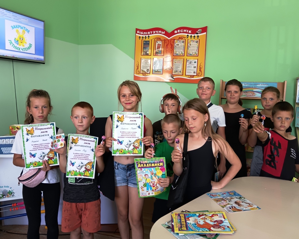 Сотрудники городской библиотеки №1 для ребят оздоровительного школьного лагеря «Краски радуги» ГУО «Средней школы №3 г. Кричева» провели литературный билиодартс «Знаешь – отвечай, не знаешь – прочитай». Дети совершили путешествие по страницам любимых книг, окунулись в атмосферу веселого состязания, остроумия и находчивости. Активно угадывали произведения и любимых героев, участвуя в конкурсах: «Юморина», «Литературный гардероб», «Школа всезнаек». А также с большим удовольствием приняли участие в музыкальных разминках «Морская фигура», «Замри – танцуй». Ребята продемонстрировали отличные знания и доказали, что они любят книгу и дружат с ней.