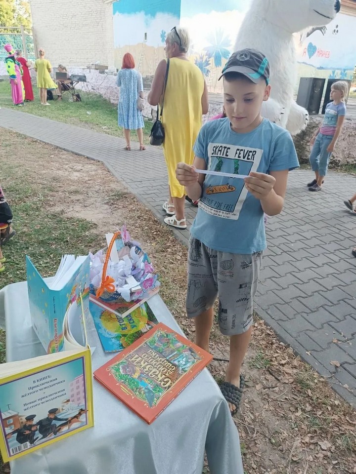 Необыкновенным и незабываемым стало «книжное лето» для читателей районной детской библиотеки, где каждое проведённое мероприятие было событием. Закрытию летних чтений была посвящёна литературно-игровая программа «До свидания, книжное лето!». Увлекательные загадки, викторины, мега-пазлы не оставили никого равнодушными. С удовольствием ребята приняли активное участие в игре «Поле чудес», литературной игре «Кто есть кто?», викторине «Хорошо ли ты знаешь сказки?». За правильные ответы все получили сладкие угощения. В конце мероприятия были награждены лучшие читатели «Летних чтений-2024». Большой интерес у присутствующих вызвала книжная выставка «Что читали этим летом, мы расскажем без секретов!». На мероприятии царила замечательная и дружелюбная атмосфера и море детских улыбок и смеха.