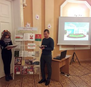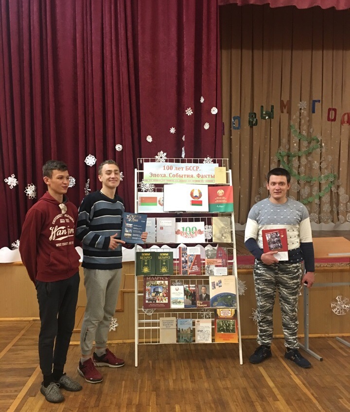 Образование и существование БССР – важнейший период национальной истории. Это целая эпоха, которая просуществовала почти весь XX век и стала фундаментом для современной белорусской государственности. Это история, которую подрастающее поколение должно знать и помнить. Был проведен обзор у книжной выставки «100 лет БССР. Эпоха. События. Факты». В завершение мероприятия учащимся был продемонстрирован видеосюжет, демонстрирующий, что становление белорусской государственности на советской основе происходило в чрезвычайно сложных геополитических условиях, развязанной Первой мировой войной, революцией и Гражданской войной.