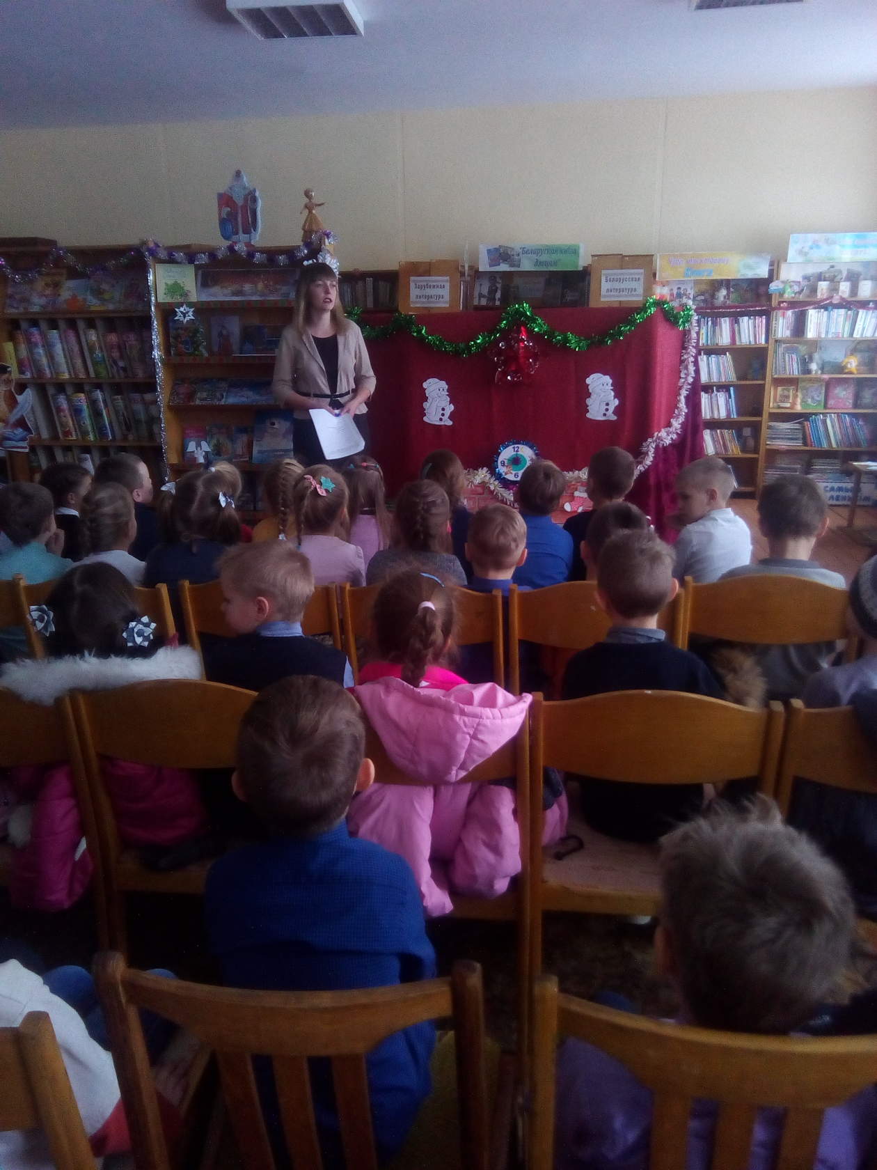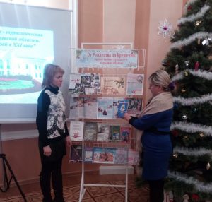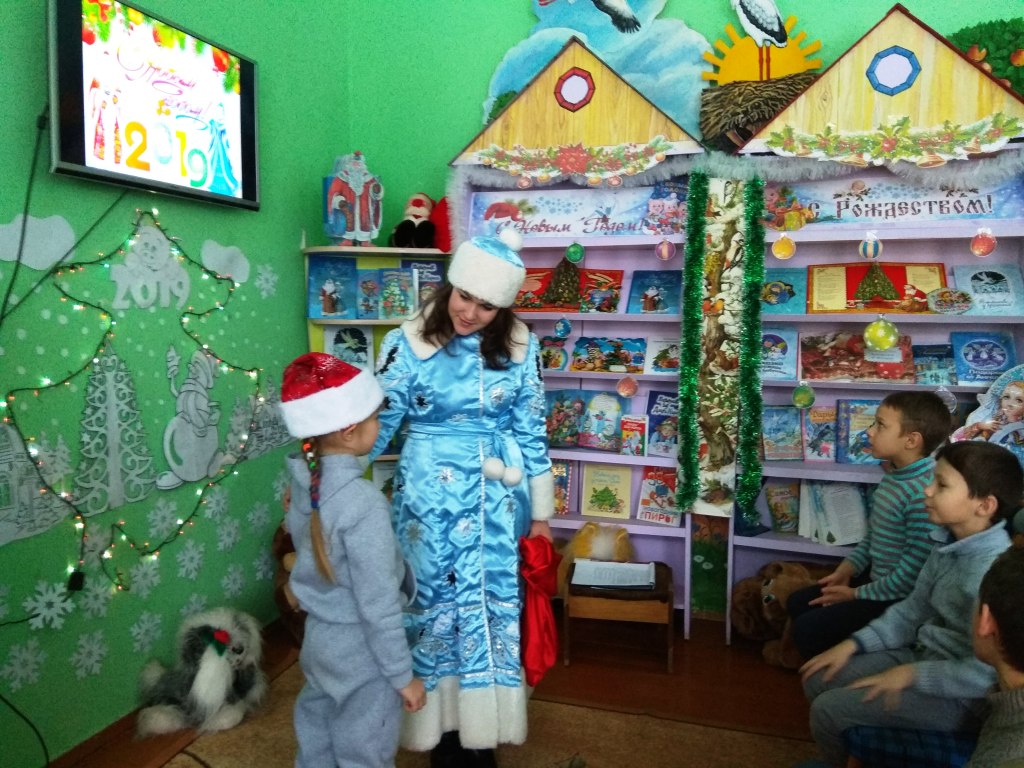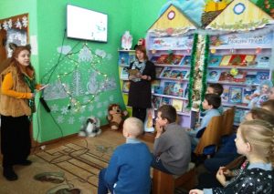 Накануне празднования Нового года в районной детской библиотеке состоялся литературно-новогодний серпантин «Давайте верить в чудеса!». Ведущая познакомила ребят с историей этого самого волшебного праздника, многообразием новогодних традиций и обычаев разных стран. Узнали много интересного о главных персонажах новогодних праздников – Дедушке Морозе и его внучке Снегурочке. С огромным восторгом встретили ребята Лису Алису, которая отгадывала загадки, и вместе спели песенку «В лесу родилась Елочка». Под веселую новогоднюю музыку к ребятам пришла Снегурочка. Вместе со Снегурочкой приняли участие в новогодних викторинах: «Что вы знаете о Дедушке Морозе», «Викторина про Новый год», «Поздравление от сказочных героев», «Снежные забавы», получили много полезных новогодних советов. На протяжении всего мероприятия демонстрировались мультипликационные фильмы: «Снеговик — почтовик», «Снежная Королева», «Дед Мороз и серый волк». Для Снегурочки ребята приготовили новогодние стихи и наградой для ребят стали сладкие угощения. В завершении литературно-новогоднего серпантина, прошел обзор у книжной выставки «С Новым годом и Рождеством!», где представлены книги новогодних стихов и сказок.