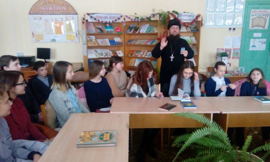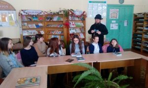 В городской библиотеке № 1 состоялся час духовного общения «Через книгу к духовному миру и согласию» с настоятелем Храма Воскресения Христова отцом Сергием для учащихся 8 класса ГУО «Средней школы № 8 г. Кричева». С большим вниманием ребята слушали настоятеля Храма Воскресения Христова отца Сергия. Он рассказал о русских святых, христианской вере, о жизни и деяниях Николая Чудотворца. В ходе общения с подростками отец Сергий предложил задуматься о своем отношении к жизни, к себе, к родителям, о своем будущем. В завершение мероприятия отец Сергий благословил детей и подарил им иконки, а библиотекарь познакомила ребят с православной литературой, имеющейся в фондах библиотеки.