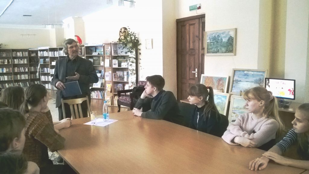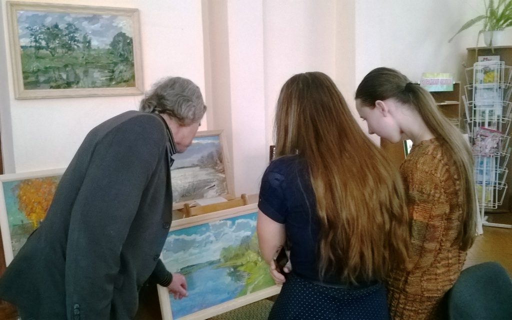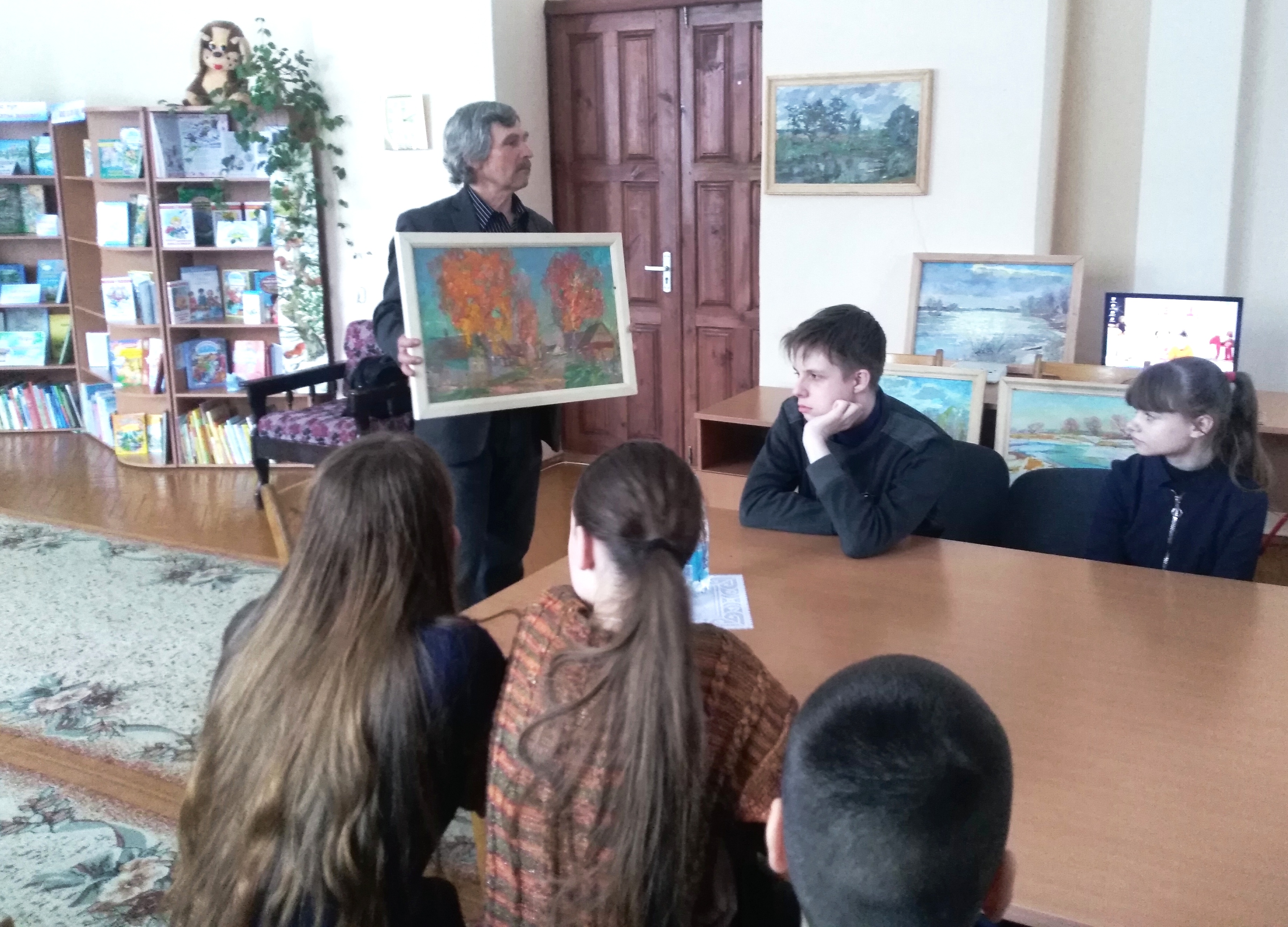 В городской библиотеке № 2 состоялась творческая встреча с педагогом, художником, членом союза художников Республики Беларусь Сергеем Николаевичем Масихо «Малая родина на картинах». На встречу были приглашены старшеклассники средней школы № 5. Мастер кисти рассказал школьникам о себе и своих картинах, о том, что преподавал в школе не только живопись, но и скульптуру. Сергей Николаевич занимается керамикой, производит мелкую пластику, свистульки, окарины, народные образы, сувениры. Пишет свои картины художник с натуры, любая тема – пейзаж, натюрморт. Ребята с интересом рассматривали представленные художником картины.