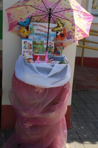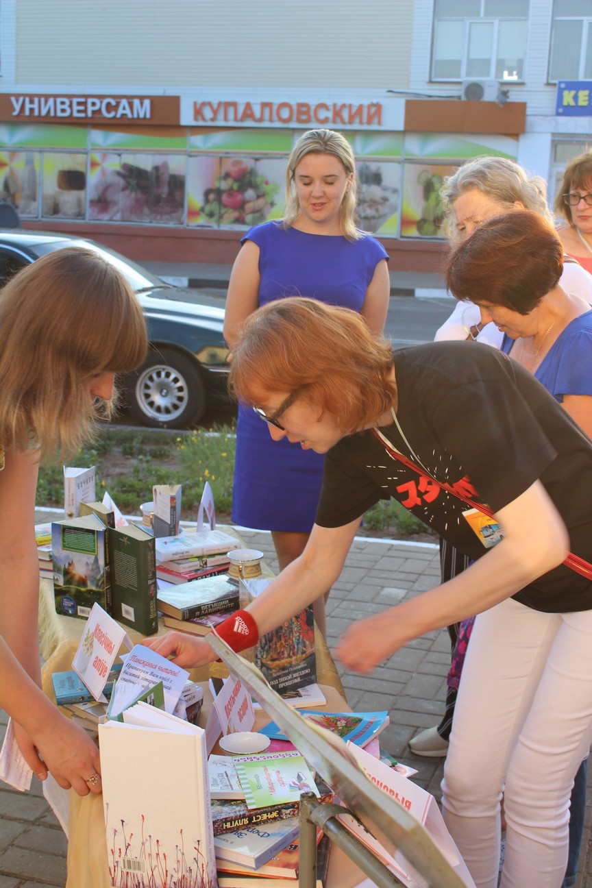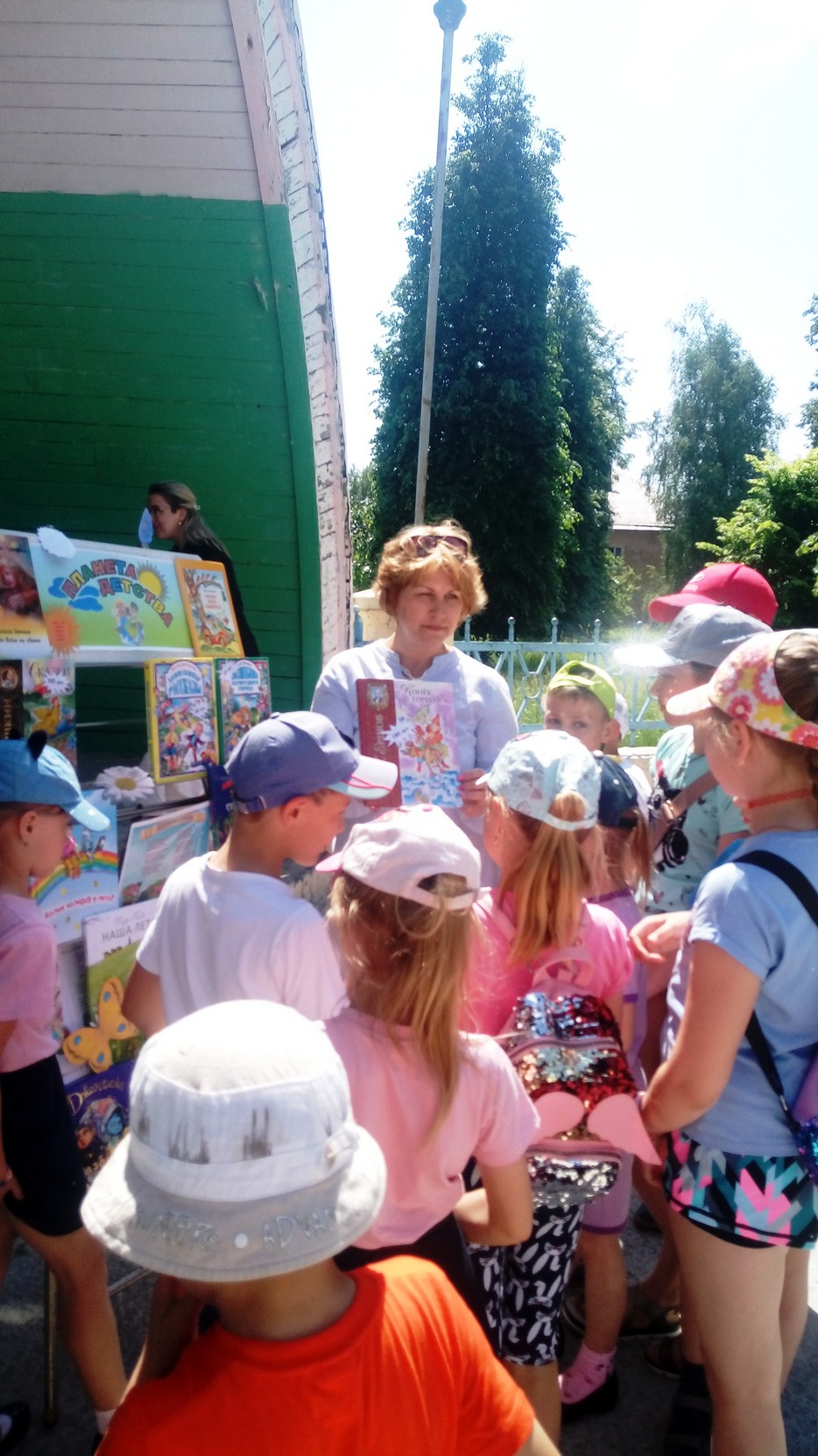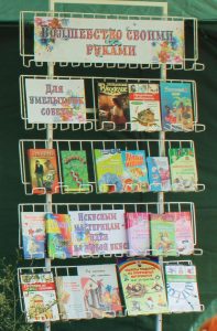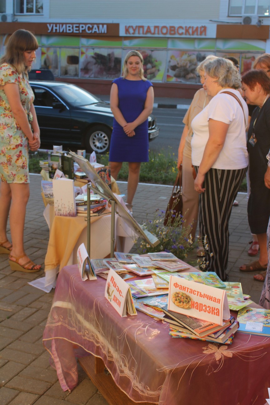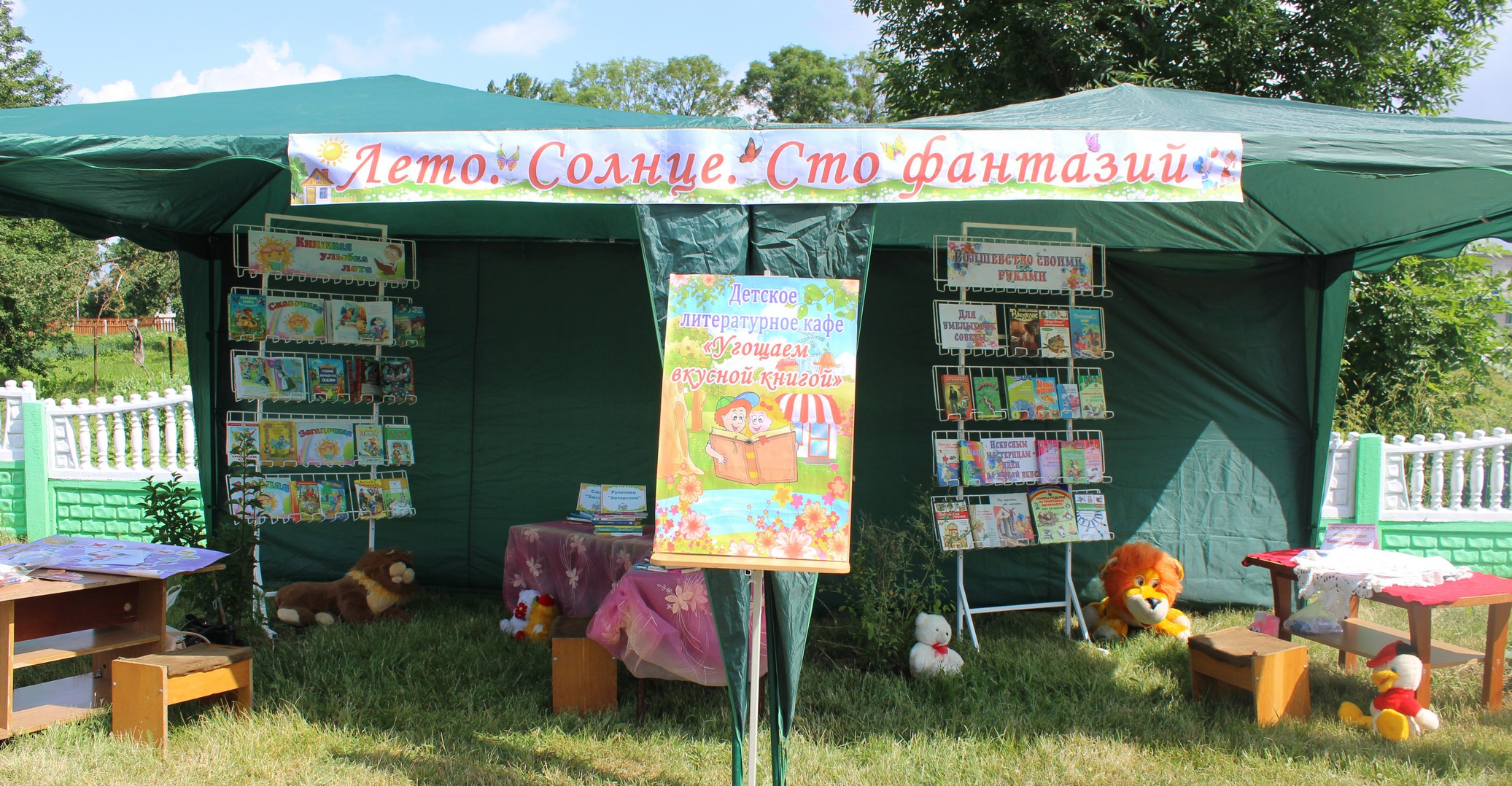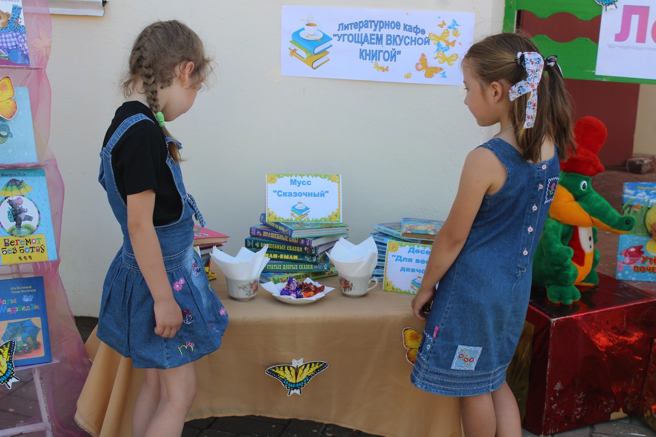 В рамках Праздника двора «Наш двор – наша малая родина» по ул. Советской работники библиотек организовали работу литературной площадки «Лето. Солнце. Сто фантазий». В рамках площадки работало литературное кафе «Угощаем вкусной книгой», где каждому читателю предлагалось «Меню для книгоежек» из книжных блюд. Все «блюда-книги» – новые, красочные и очень интересные. Книжная полянка «Почитай-ка» пригласила детей поиграть, почитать, весело провести время в кругу друзей.