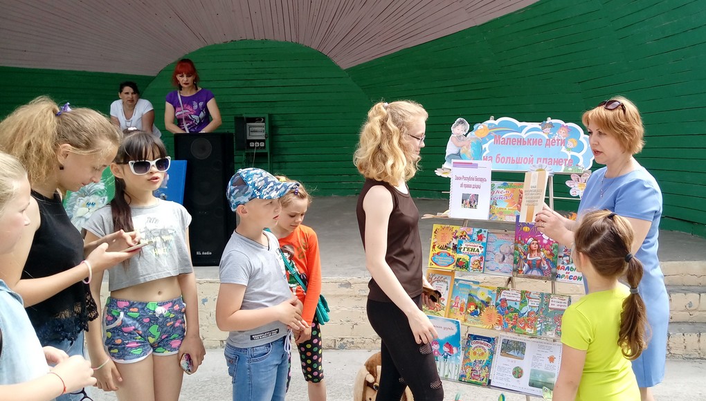 Работниками городской библиотеки № 2 совместно с ДК «Цементник» была проведена детская литературно-развлекательная программа «Пусть смеются дети!». Ребята отгадывали загадки по безопасности летом, играли в игры: «Выглянуло солнышко», «Светофорная», «С огнём шутки плохи», «Витаминная», «Поход», проводилось литературное лото «Знатоки литературы». Прекрасно исполняли песни о лете, о дружбе, о солнце, читали стихи. Немало собралось ребят у литературной выставки «Маленькие дети на большой планете», где в игровой форме познакомились с важным правовым документом «Конвенцией ООН о правах ребёнка».