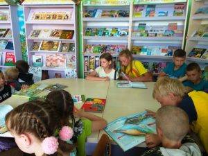 В дни летних каникул в районной детской библиотеке для ребят из школьного лагеря ГУО «Ботвиновский учебно-педагогический комплекс детский сад-средняя школа» прошла библиоэкскурсия «Путешествие в страну Читалию». Ребята побывали в удивительном городе, где вместо улиц — ряды книжных стеллажей, вместо этажей — книжные полки, дома — это тома книг, а у каждого дома своё название.