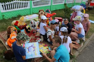 Все, кто любит книги и чтение, померились силами в борьбе за почетное звание «Суперчитатель». Проявить свои творческие способности можно было в мастер-классе по изготовлению белорусской куклы. Ребята отправились в морской круиз по Книжному океану, посетили несколько островов: «Всезнайки», «Книгочеи», «Архипелаг Книголюбов», проплыли «Литературный Залив». На каждой остановке дети выполняли литературное задание капитана. Любители отдыха с книгой смогли выбрать для себя захватывающий детектив или роман о любви, приключения или комиксы, сказки или рассказы для детей в веселом книжном чемоданчике «Лето, солнце, море, пляж: какую книгу взять в багаж». Библиотекари приглашали мальчишек и девчонок на литературную рыбалку «Рыбка – ловись, на вопрос отзовись» только рыба оказалась не простая, а с заданиями на плавниках. И чтобы ее положить в ведро, нужно было ответить на литературные вопросы или выполнить литературное задание. На площадке работал фотосалон, где можно было фотографироваться с ростовыми куклами и сделать фото на память.