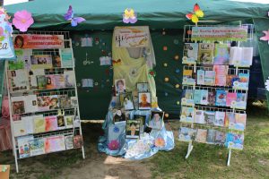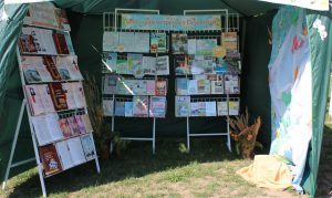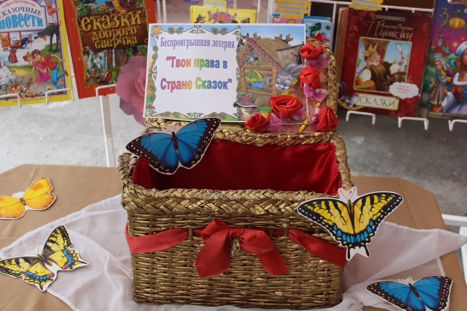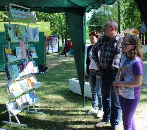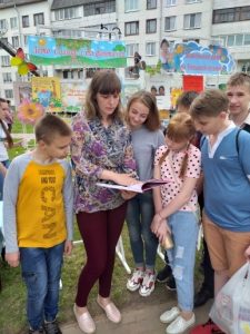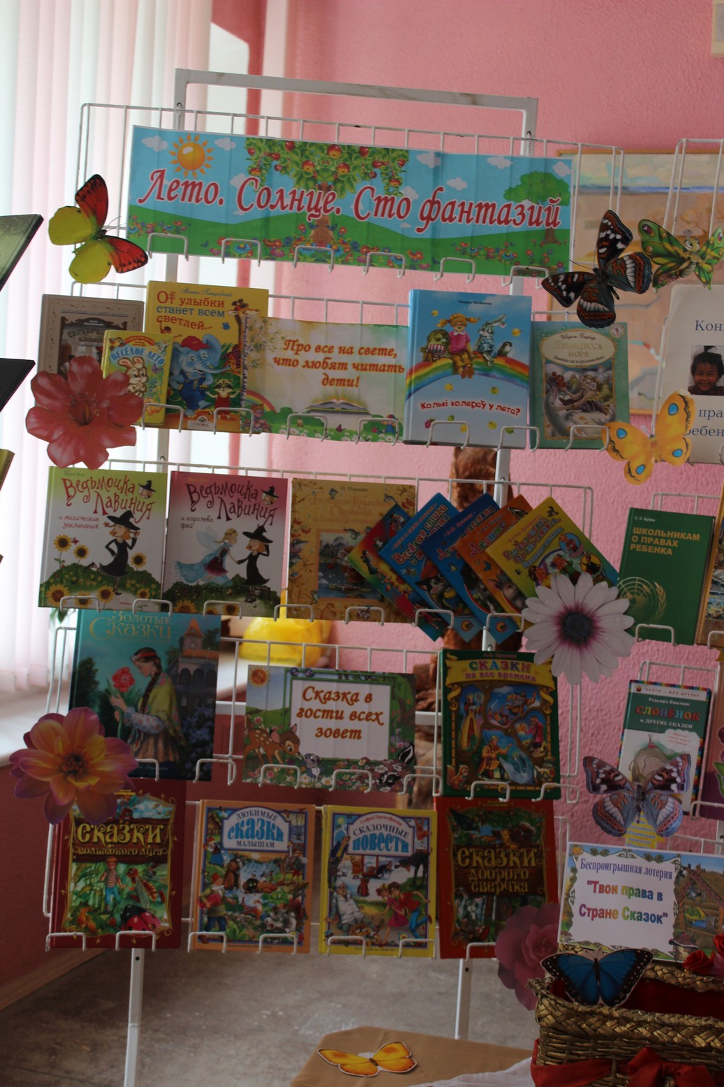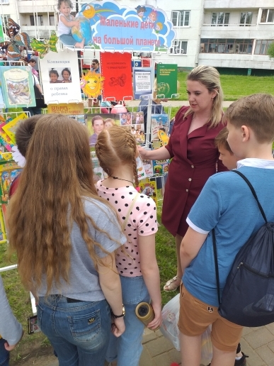 На литературной выставке «Маленькие дети на большой планете» был представлен материал о защите прав ребёнка, законодательные акты, направленные на создание благоприятных условий для жизни и развития детей, защиты их прав и законных интересов. Заинтересовала ребят литературная выставка-обзор «Лето. Солнце. Сто фантазий», которая содержала интересные новинки художественных произведений о мире и дружбе, сказки для самых маленьких. Помимо программной литературы, юные читатели могли познакомиться с юбилейной выставкой «Детские писатели-юбиляры 2019 года». Литературная выставка «Детский пресс-экспресс» знакомила ребят всех возрастов с детскими журналами, а на выставке-вертушке «Кніга родная, беларуская!» представлены книги на родном белорусском языке. Гости праздника с удовольствием приняли участие в беспроигрышной лотерее «Твои права в Стране Сказок».