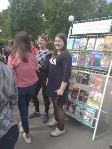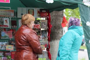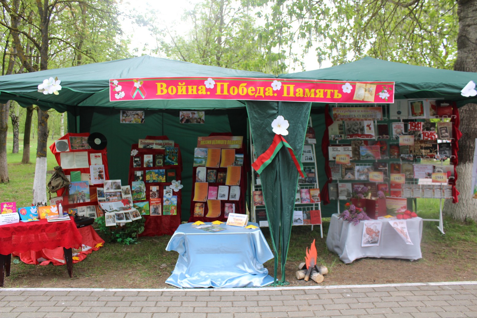 В рамках городской праздничной программы, посвященной 74-й годовщине Победы в Великой Отечественной войне, в Парке Победы организована работа интерактивной библиотечной площадки «Война. Победа. Память».