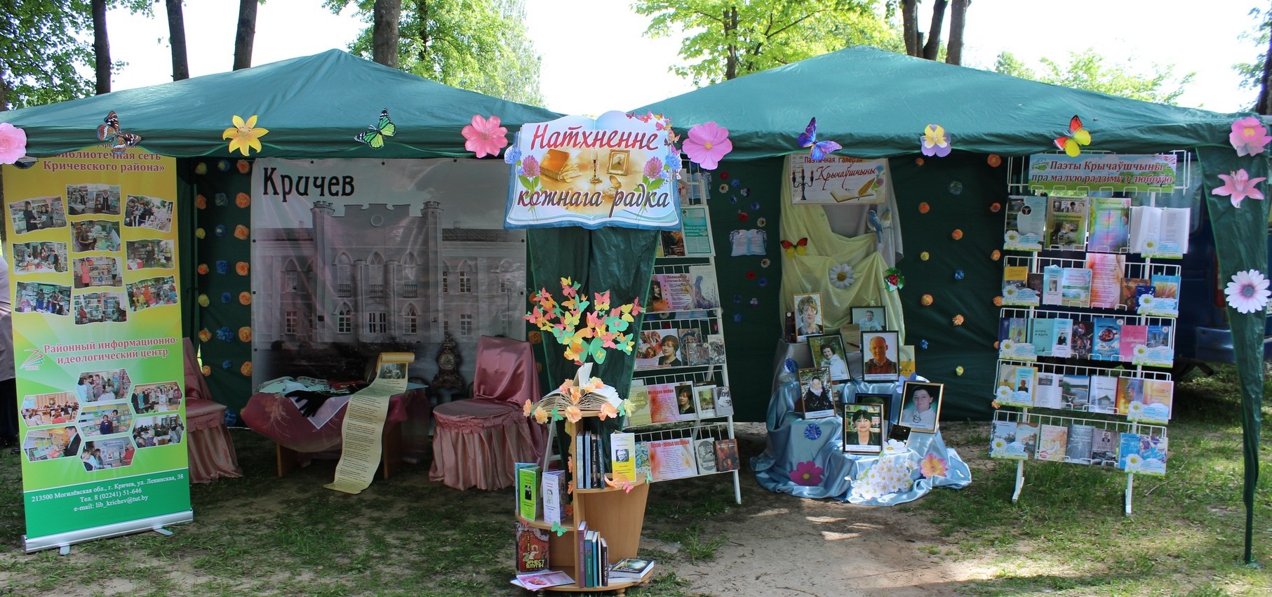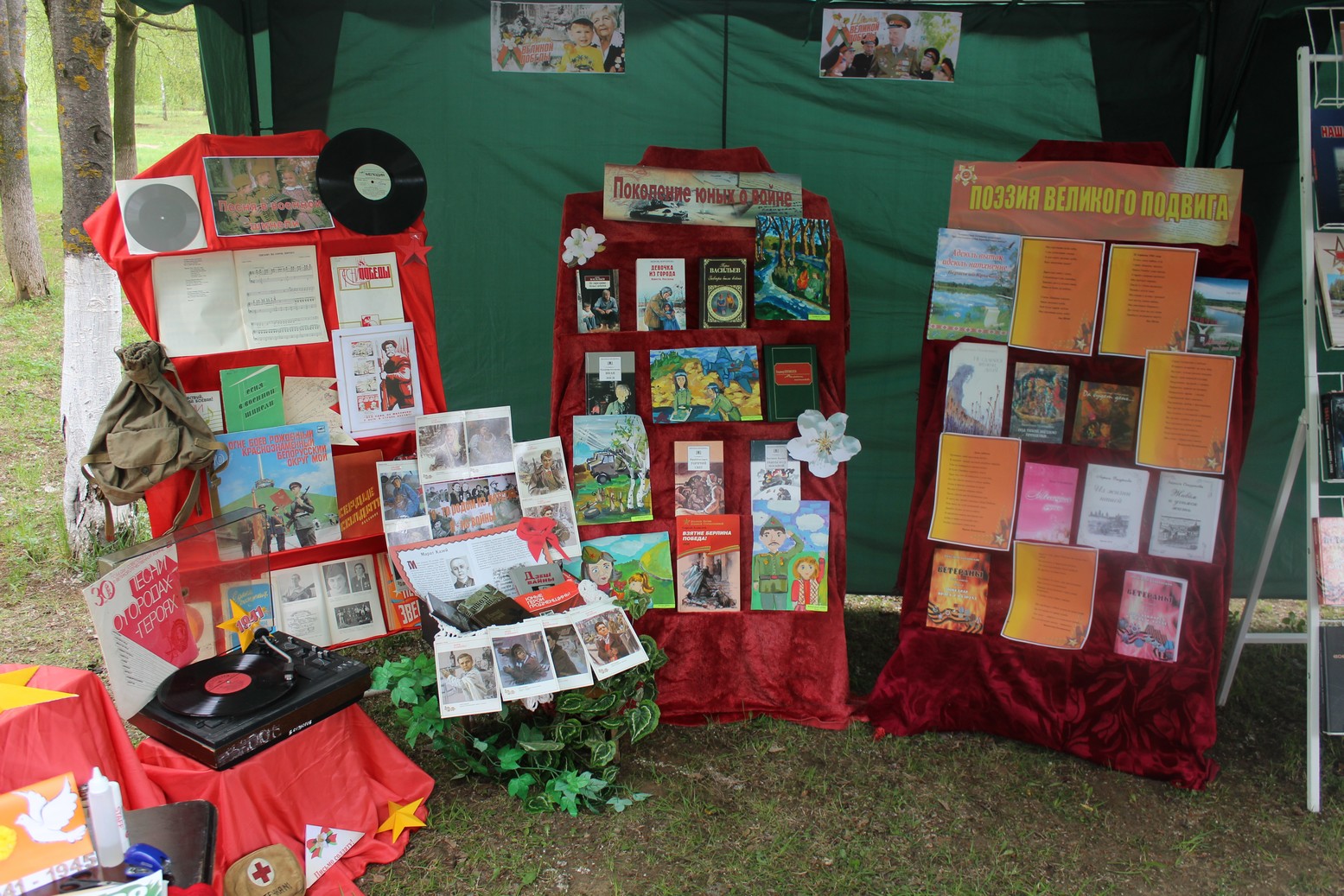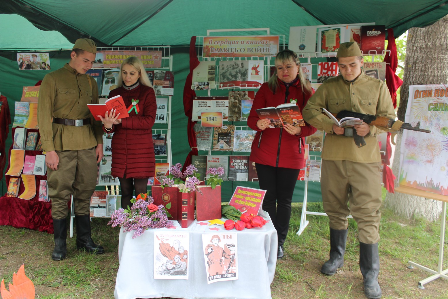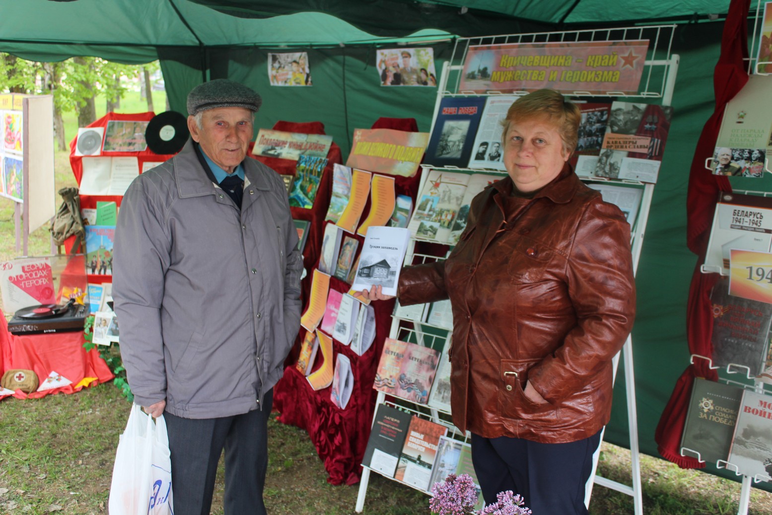 Все желающие могли принять участие во всевозможных акциях, тематических играх и викторинах, организованных работниками библиотек. Дню Победы посвящена трибуна читателей «Огни победного салюта». Гостей площадки приглашали написать на плакате автора и название прочитанной книги о войне. В рамках историко-краеведческой игры «По местам боевой славы» гости площадки демонстрировали знания исторических фактов и памятных мест Кричевщины. Гости всех возрастов с удовольствием приняли участие в мастер-классе «Подари открытку ветерану», где изготавливали открытки-аппликации, на которых писали пожелания ветеранам и детям войны. В рамках промо-акции «Прочитайте книгу о войне» библиотекари раздавали информационные листовки и закладки, рекламирующие художественные произведения о войне. Для гостей и жителей города работал фотосалон «Славной Победе улыбку посвятим!».