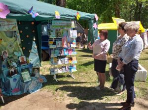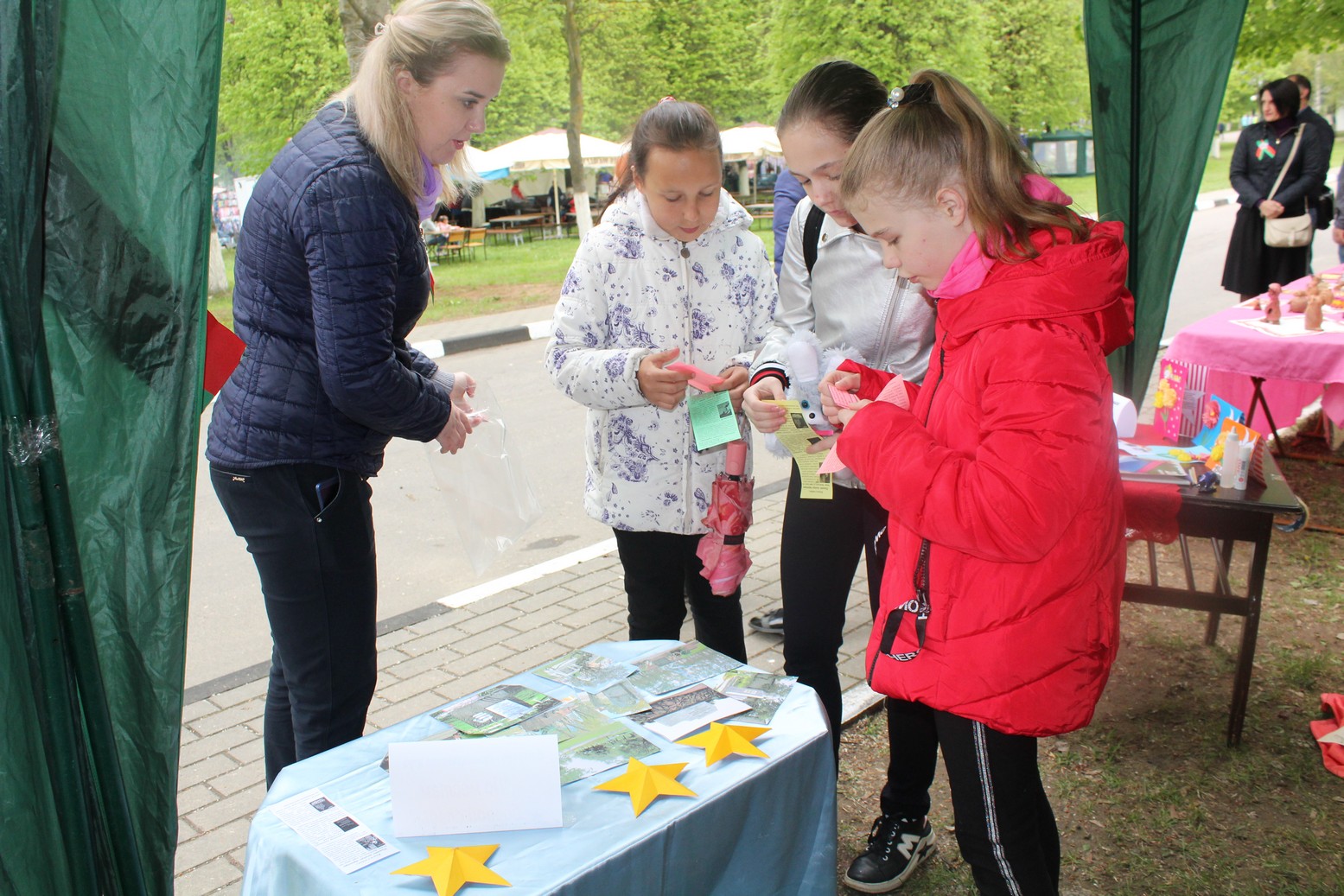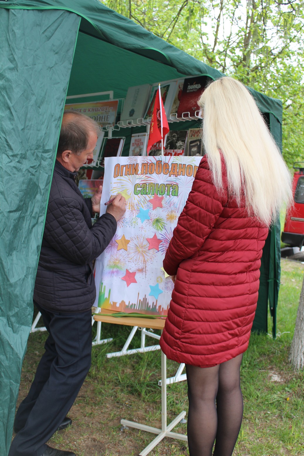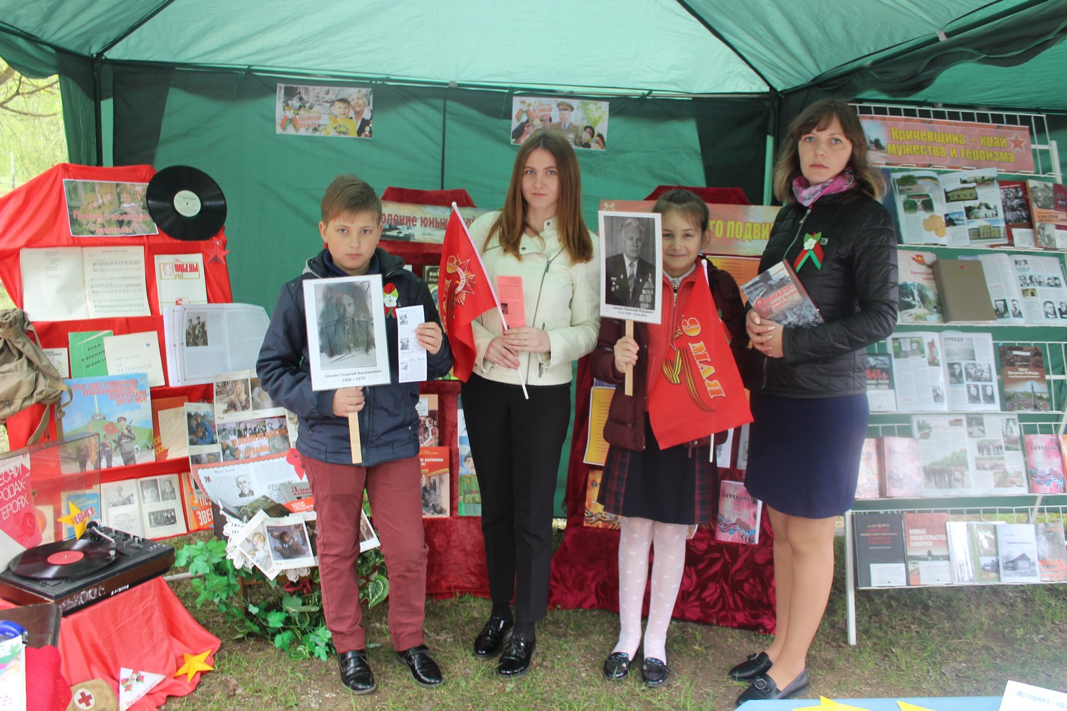 Все желающие могли принять участие во всевозможных акциях, тематических играх и викторинах, организованных работниками библиотек. Дню Победы посвящена трибуна читателей «Огни победного салюта». Гостей площадки приглашали написать на плакате автора и название прочитанной книги о войне. В рамках историко-краеведческой игры «По местам боевой славы» гости площадки демонстрировали знания исторических фактов и памятных мест Кричевщины. Гости всех возрастов с удовольствием приняли участие в мастер-классе «Подари открытку ветерану», где изготавливали открытки-аппликации, на которых писали пожелания ветеранам и детям войны. В рамках промо-акции «Прочитайте книгу о войне» библиотекари раздавали информационные листовки и закладки, рекламирующие художественные произведения о войне. Для гостей и жителей города работал фотосалон «Славной Победе улыбку посвятим!».