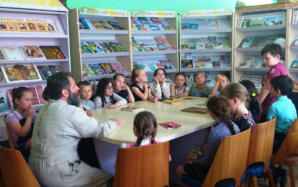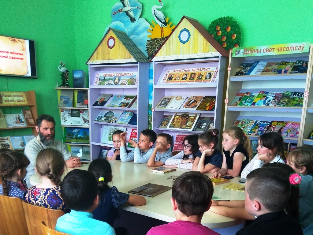 О главных книгах для каждого христианина ребятам рассказал настоятель Свято-Никольского храма отец Андрей. В ходе мероприятия была продемонстрирована видео презентация-путешествие «От глиняной таблички к печатной страничке» и видеоролик «Музей книги Национальной библиотеки Беларуси». В конце мероприятия прошел обзор у книжной выставки «Лишь слову жизнь дана».