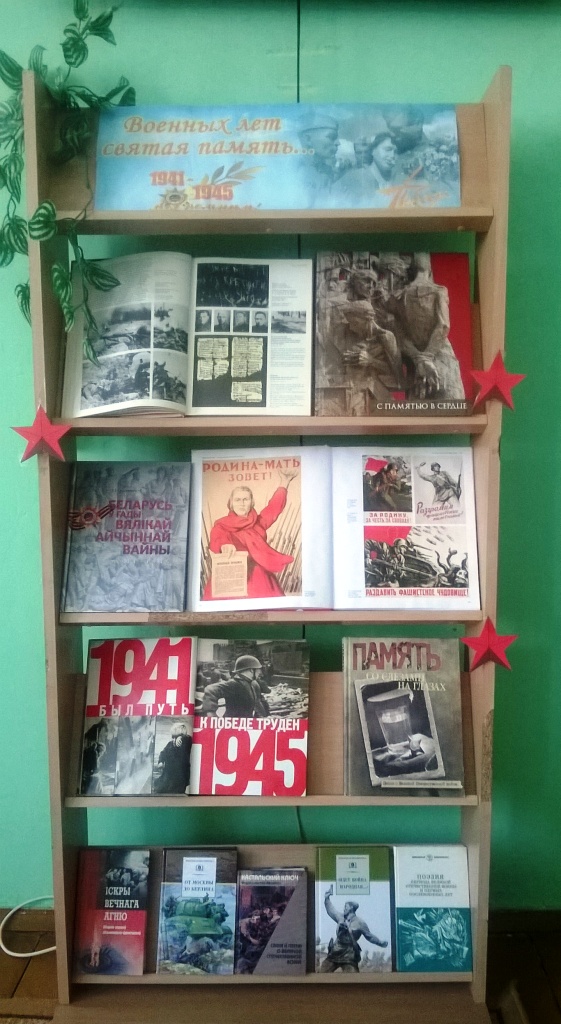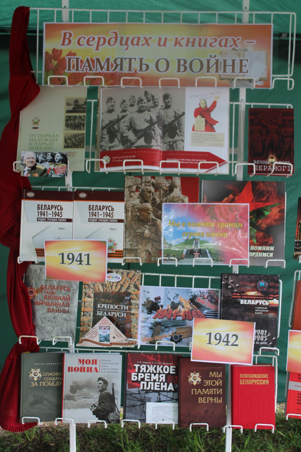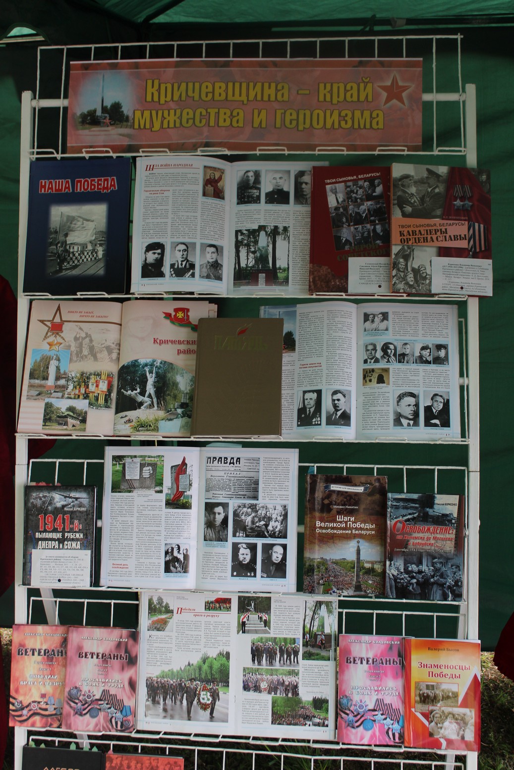 Память о войне 1941-1945 года хранится в людских сердцах и передается из поколения в поколение. Книги и фотоматериалы о событиях Великой Отечественной войны представлены на литературных выставках «В сердцах и книгах – память о войне», «Кричевщина – край мужества и героизма». С произведениями писателей и журналистов Кричевщины о войне знакомила книжная экспозиция «В книжной памяти мгновения войны» и «Голоса войны: журналисты Кричевщины времен Великой Отечественной войны».