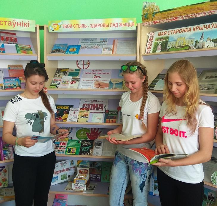 Работники читального зала Кричевской центральной библиотеки приняли участие в акции «Белорусское общество Красного Креста – школе», которая проходила на территории ГУО «Средняя школа №1 г. Кричева». Была организована книжная выставка «Жизненная позиция – здоровый образ жизни», на которой представлены информационные материалы по формированию здорового образа жизни среди молодёжи и бережному отношению к своему здоровью. Проведена игра –викторина «Здорово жить!»