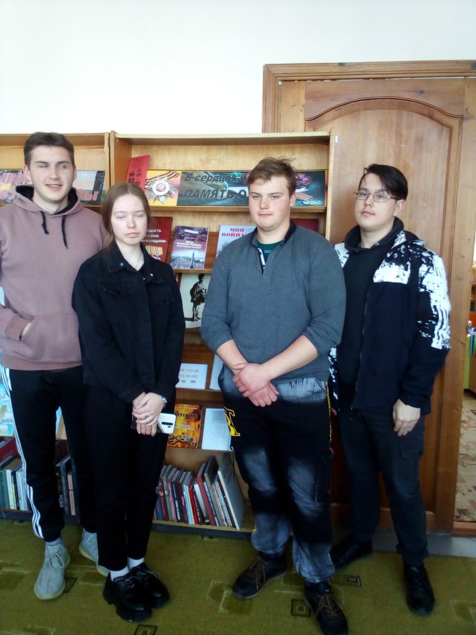 В рамках военно-патриотического марафона библиотек Могилевской области «Мы будем чтить ваш подвиг вечно» и Года исторической памяти сотрудники читального зала провели для учащихся УО «Кричевский государственный профессиональный агротехнический колледж» литературно-патриотическую композицию «Мы помним!».