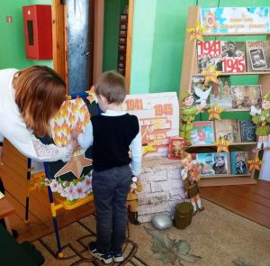 Память о войне 1941-1945 года хранится в людских сердцах и передается из поколения в поколение. Книги и фотоматериалы о героях, отдавших свою жизнь за будущее страны, были представлены на книжно-иллюстративных выставках «Нам есть чем гордиться, нам есть что беречь», «Война. Победа. Память», «Кричевщина – край мужества и героизма». Для маленьких посетителей библиотекари организовали работу творческой мастерской, на которой было очень большое количество участников. Ребята с удовольствием приняли участие в работе мастер-класса по изготовлению голубей мира, солдатских пилоток, красных гвоздик победы.