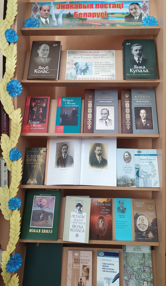 Напярэдадні святкавання юбілеяў Янкі Купалы і Якуба Коласа, якія адзначаюцца ў 2022 годзе цэнтральная бібліятэка прапануе кніжную выставу літаратуры «Знакавыя постаці Беларусі» (да 140-годдзя з дня нараджэння).