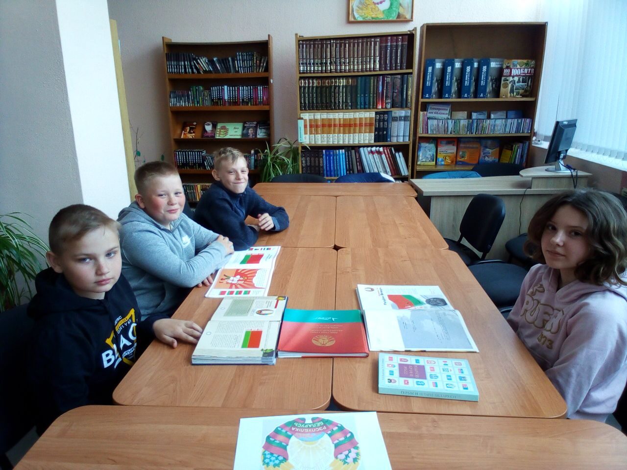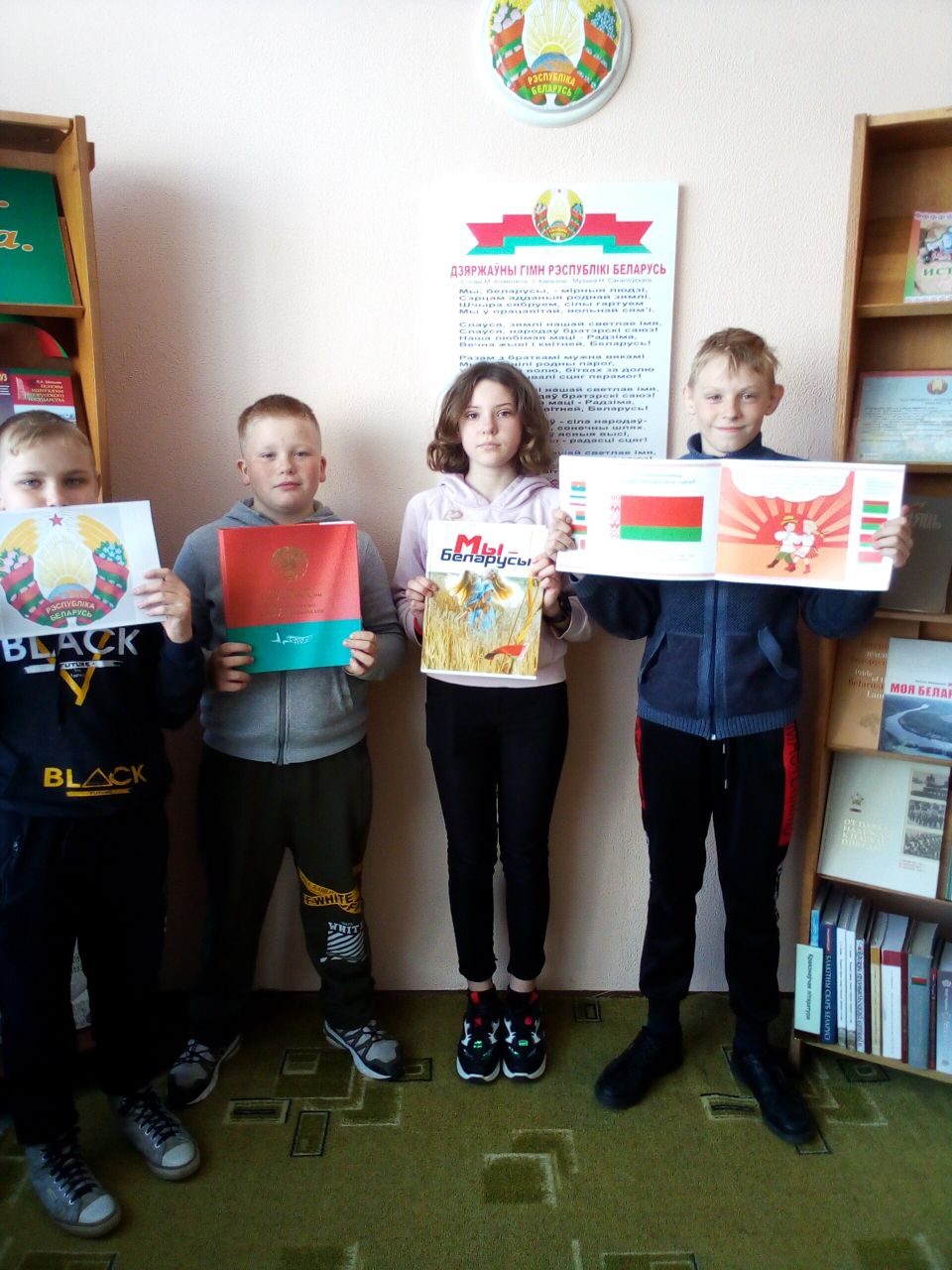 В районной детской библиотеке к той дате прошел исторический калейдоскоп «Символы нашей страны». Библиотекарь рассказала школьникам о символах Республики Беларусь, разъяснила юным читателям основные понятия и термины, отметив, что государственная символика – это общегражданская ценность и необходимо с уважением к ней относиться. С большим интересом ребята просмотрели видеоролик «Беларусь, моя страна – Моя родина», а также проверили свои знания, поучаствовав в викторине «С чего начинается Родина». Час геральдики «И флаг, и герб, и гимн сердца объединяют» прошел в Краснобудской сельской библиотеке. Граждане любой страны с гордостью и любовью относятся к государственным символам своей страны, поэтому государственную символику с детства нужно уважать, ценить и беречь. Ребята приняли участие в викторине «Символы моей страны». «Государственные символы страны: история и современность» — под таким названием прошёл час истории в Молятичской сельской библиотеке. Библиотекарь познакомила ребят с историей возникновения символов нашего государства. В Сокольничской сельской библиотеке был проведён исторический час «Гордые символы Беларуси», в рамках которого библиотекарь рассказала об истории государственных символов нашей страны, участвовали в викторине «Значение государственной символики.