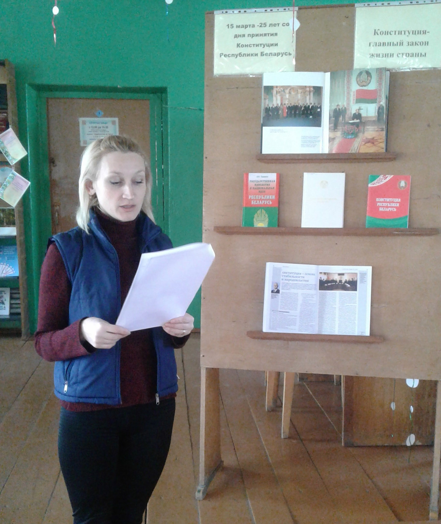 В городской библиотеке №2 прошёл информационный час «Конституция – гарант белорусской государственности», посвящённый 25-летию принятия Конституции Республики Беларусь.
