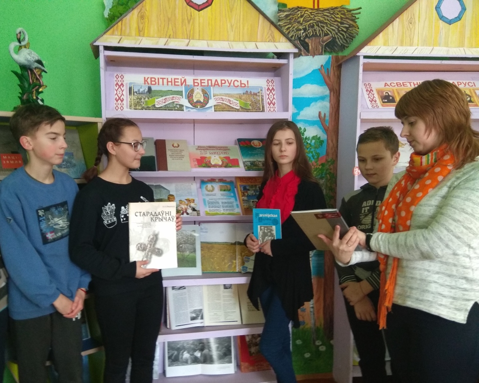 В завершение мероприятия библиотекарь познакомила школьников с материалами книжной выставки «День Конституции Республики Беларусь».