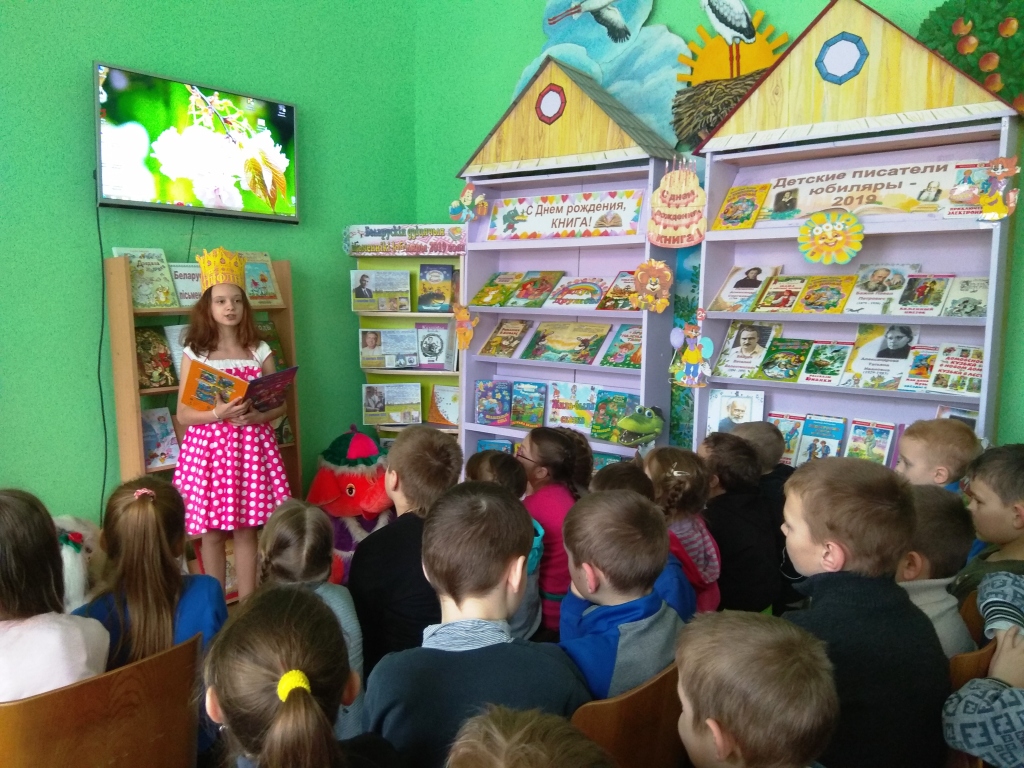 Для юных участников мероприятия были организованы книжные выставки: «С днем рождения книга!», «Беларускія пісьменнікі дзецям», «Детские писатели-юбиляры 2019 года». Любимые белорусские, русские и зарубежные детские писатели и поэты приглашали ребят в увлекательное путешествие по страницам своих книг.