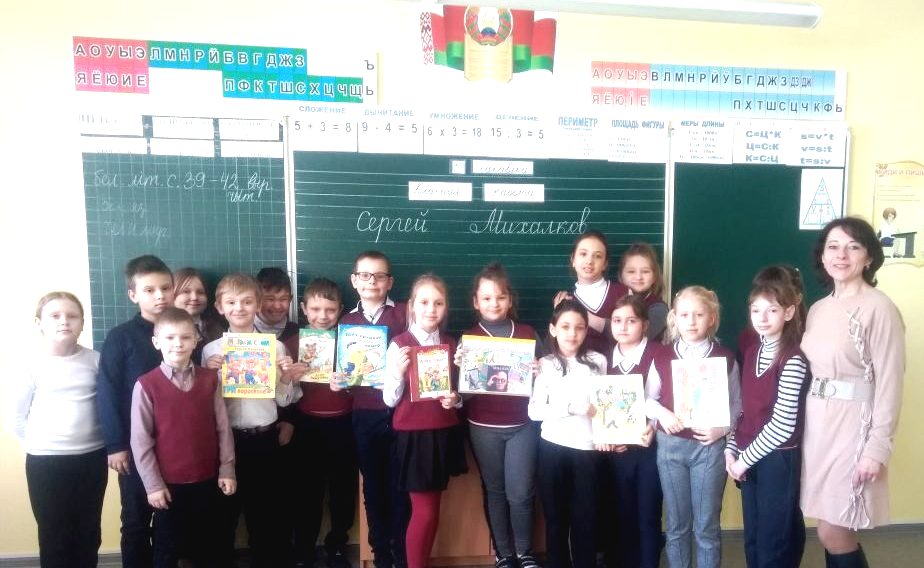 13 марта исполняется 110 лет со дня рождения классика русской детской литературы, поэта, баснописца, драматурга Сергея Владимировича Михалкова. В преддверии этой даты в городской библиотеке №2 для учащихся 3 «Б» класса ГУО «Средняя школа №5 г. Кричева» прошла литературная игра «Весёлый день с Сергеем Михалковым». В этот день ребята узнали много интересных историй о жизни и творчестве любимого поэта, а потом все вместе отправились в путешествие на волшебном паровозике в мир его произведений. В «Средней школе №8 г. Кричева» для младших школьников сотрудниками городской библиотеки № 1 был проведен литературный праздник «Веселый день с Сергеем Михалковым». Ребята принимали участие в увлекательной викторине «Веселые строчки» и разгадывали загадки. К мероприятию была организована литератур ная выставка «Путешествие в Михалковград». «Наш любимый Михалков!» — под таким названием в Бельской сельской библиотеке прошла литературная викторина. Ведущая познакомила с биографией и творчеством Сергея Михалкова. Ребята вспомнили стихи, басни и сказки, написанные автором. Мероприятия завершились просмотром мультфильмов «Сами виноваты», «Дядя Стёпа – милиционер» и др.