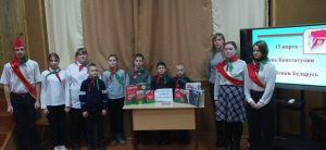 15 марта наша страна отмечает государственный праздник – День Конституции Республики Беларусь. Именно Конституция определяет правовое и общественное устройство Беларуси, гражданский и правовой статус человека в нашей стране. Цикл мероприятий, приуроченных ко Дню Конституции Республики Беларусь и направленных на формирование гражданской, патриотической и правовой культуры пользователей, прошел в библиотеках ГУК «Библиотечная сеть Кричевского района». В преддверии государственного праздника Дня Конституции Республики Беларусь, в рамках любительского объединения «Правовой меридиан» Костюшковичской сельской библиотеки прошел интеллектуальный турнир «Во мне взрослеет гражданин». На мероприятии ребята смогли ознакомиться с Конституцией Республики Беларусь, отвечали на вопросы викторины «Узнай главный закон страны», а также играли в игру по статьям конституции «Да! Нет!». На базе ГУО «Средняя школа №8 г. Кричева» сотрудник городской библиотеки №1 провела деловую игру «Я – гражданин Республики Беларусь». Ребята активно принимали участие в интеллектуальной игре «Конституция Республики Беларусь», в викторине «Права и обязанности». Сопровождалось мероприятие медиапрезентацией «Конституция – Основной Закон страны».