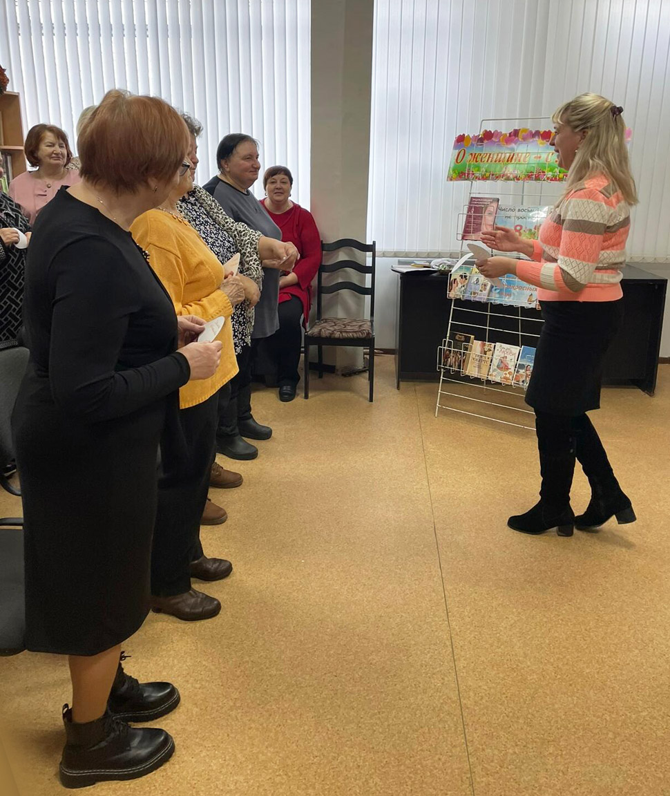 8 марта – Международный женский день. Это время, когда прекрасная половина человечества принимает подарки и пожелания в свой адрес. Этот день согрет лучами солнца, женскими улыбками, украшен россыпью цветов. Накануне праздника в районном центре социального обслуживания населения в отделении дневного пребывания для инвалидов прошла литературно-музыкальная композиция «Женщина – это звучит гордо». Под звуки музыки и со словами поздравлений встречала ведущая участников мероприятия. Заведующий городской библиотекой № 1 поздравила присутствующих с наступающим праздником весны, рассказала об истории праздника, провела конкурсы: «Нежные слова», «Возьми приз!», «Театральный», «Музыкальный», «Ромашка», викторину «Цветы», в которых были задания на внимание, смекалку. В атмосфере весны, поэзии и радости участники праздника читали стихотворения, пели, поздравляли женщин. Городская библиотека №2 для участниц учреждения Кричевский РЦСОН провели литературный час «И полнятся любовью женщин души…». Участники мероприятия узнали, как в творчестве многих писателей женщины становились воплощением земной красоты, источником вдохновения. В Ботвиновской сельской библиотеке в преддверии Международного женского дня, для представительниц прекрасной половины прошла литературно-музыкальная композиция «Есть в марте день особый». В ходе мероприятия с участницами были проведены шуточные тесты, так же женщины узнали кто они по специальному цветочному гороскопу. Музыкальное поздравление для любимых мам, бабушек и всех женщин прозвучало в исполнении Копыловой Ирины. В Краснобудской сельской библиотеке прошел литературный час «Образ женский! Образ милый!». В адрес женщин прозвучало много теплых слов в стихах, прозе и в песнях. В Лутовской сельской библиотеке-клубе с участием фольклорного клуба «Сяброўкі» состоялась литературно-музыкальная композиция «Есть в марте день особый». Во время мероприятия для присутствующих звучали тематические песни, стихи, сценки и конкурсы. На мероприятии присутствовала местная писательница А.А.Рыжанкова, которая подготовила стихотворение о женщинах. В конце мероприятия мужчины приглашали женщин на танец.