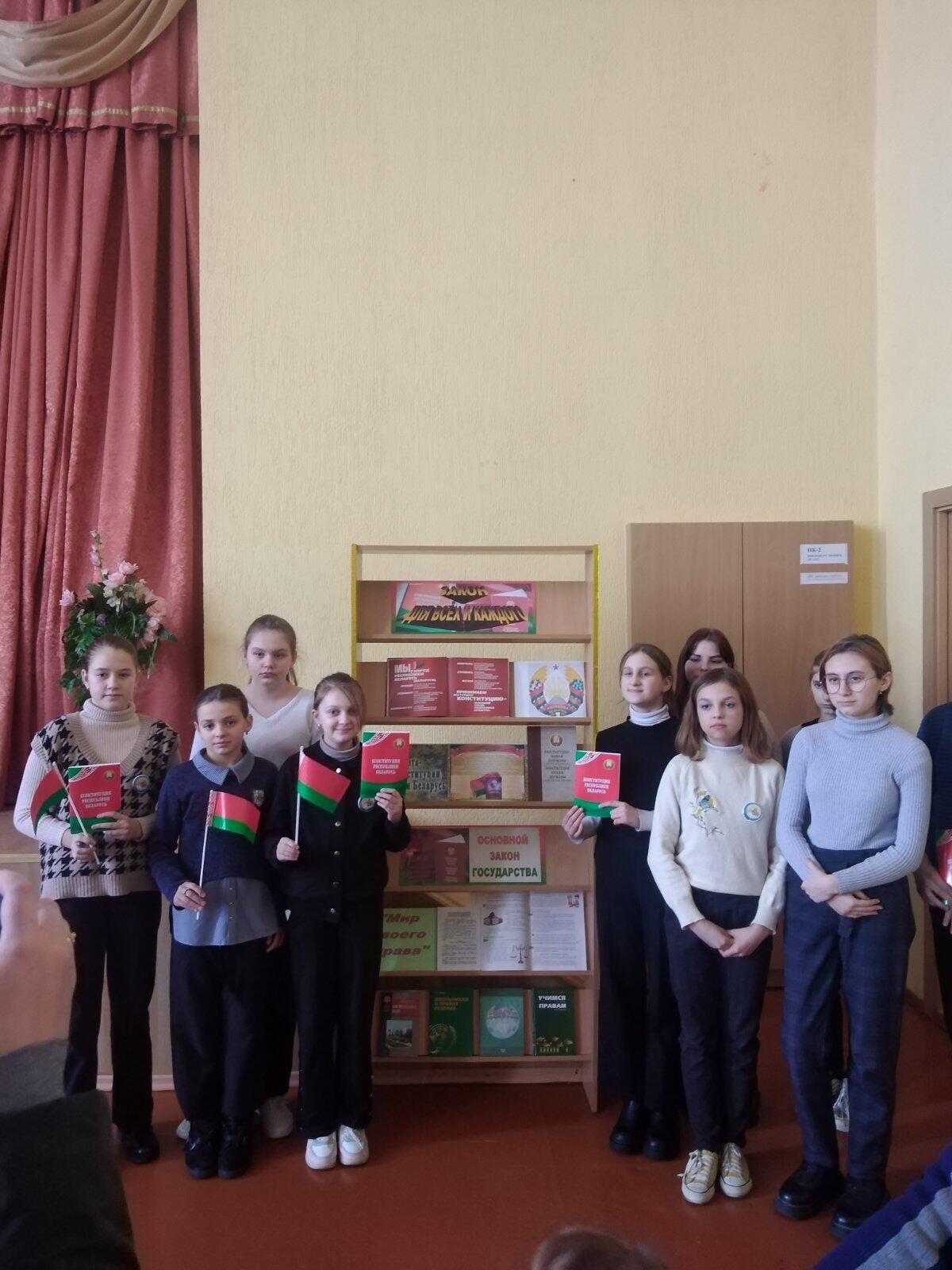 В правовом центре центральной районной библиотеки прошел открытый диалог «Конституция — основа развития общества и государства» с учащимися 11 класса ГУО «Средняя школа №1 г. Кричева». Цель диалога – воспитание чувства уважения, гордости к Конституции и символике нашего государства. Проведен обзор книжной выставки «Конституция – основной закон страны», документы которой отражают уровень развития общества, характер сложившихся на момент принятия Конституции властных отношений и воплощают в себе исторический опыт становления белорусской государственности.