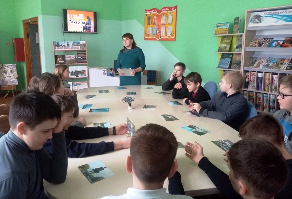 В центральной районной библиотеке прошел час памяти «Хатынь: символ вечной памяти и трагедии белорусского народа» для учащихся 8 «А» класса ГУО «Средняя школа №1». Ребята ещё раз вспомнили о той ужасной трагедии, которая постигла жителей деревни. Звучали свидетельства из протоколов допроса выживших в этой страшной трагедии. Присутствующие услышали также о трагических событиях и на территории Кричевщины. Жителей деревни Антоновка Кричевского района постигла участь Хатыни. Для учащихся 6 «В» класса ГУО «Средняя школа № 8 г. Кричева» сотрудники городской библиотеки №1 провели набат памяти «Звонят колокола Хатыни». Был продемонстрирован 10-минутный отрывок из художественного фильма «Иди и смотри», снятый в жанре военной драмы Э. Климовым по сценарию белорусского писателя Алеся Адамовича. Вспомнили также о трагических судьбах д. Борки, д. Антоновка Кричевского района. Совершив виртуальную экскурсию, учащиеся узнали об истории создания мемориального комплекса «Хатынь. Для учащихся ГУО «Средняя школа № 1 г. Кричева» в районной детской библиотеке прошёл урок памяти «Судьбы сожженных деревень». Рассказ о Хатынской трагедии сопровождался показом видеороликов с кадрами кинохроники. Ребята совершили виртуальное путешествие по государственному мемориальному архитектурно-скульптурному комплексу «Хатынь». Мероприятие сопровождалось медиа-презентацией «Памяти сожжённых деревень. Хатынь». Городская библиотека №2 провела час памяти «Пепел Хатыни в сердца нам стучится» для учеников 8-х классов средней школы №5. О событиях тех дней учащимся был показан презентационный материал «Гудят колокола памяти», ребята услышали историю той страшной трагедии, которая случилась в деревне Хатынь 22 марта 1943 года. К мероприятию была оформлена книжная выставка «Хатынь – наша память и боль». «О чем звонят колокола Хатыни» – так назывался час-реквием для учеников ГУО «Бельская средняя школа Кричевского района», который прошёл в Бельской сельской библиотеке. О событиях тех дней учащимся был показан презентационный материал «Стучит в сердцах набат Хатыни». Школьники почтили память погибших минутой молчания. В Ботвиновской сельской библиотеке для школьников прошел час памяти «Звон Хатыни», который также был посвящён истории создания Государственного мемориального архитектурно-скульптурного комплекса «Хатынь», созданного как дань памяти погибшим жителям деревни Хатынь и всем белорусским деревням, которых постигла та же участь. Накануне скорбной даты в Сокольничской сельской библиотеке был проведён час памяти «Боль и пепел Хатыни». В ходе мероприятия ребята узнали об истории возникновения деревни Хатынь и той ужасной трагедии, которая постигла жителей деревни 22 марта 1943 года.