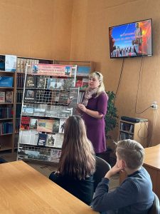 Работники центральной библиотеки провели идеологический час «Созвучие сердец: Беларусь и Россия» ко Дню единения народов Беларуси и России для учащихся Кричевского государственного аграрно-строительного колледжа. Шла речь о важной дате в жизни Союзного государства, как символа непреходящей ценности белорусско-российской дружбы. Для двух народов этот праздник символизирует нерушимость многовекового братства, воплощает их стремление вместе строить свою жизнь и созидать будущее. Познакомили с материалами книжно-иллюстративной выставки «Наша дружба в единстве», которая ярко продемонстрировала национальное достояние, богатое культурное наследие русского и белорусского народов, наглядно показав их общность, близость не только географическую, но и духовную.