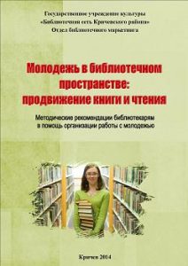 Молодежь в библиотечном пространстве : продвижение книги и чтения [Текст] : методические рекомендации библиотекарям в помощь организации работы с молодежью / Государственное учреждение культуры «Библиотечная сеть Кричевского района» ; Отдел библиотечного маркетинга ; [составители : Е.Н. Москалёва, Е.А. Бусова ; редактор В.В. Стебихова ; ответственная за выпуск В.Н. Бачкова]. – Кричев : Отдел библиотечного маркетинга, 2014. – 72 с.
