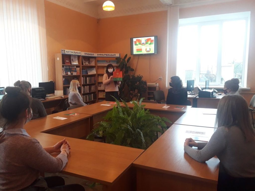 С целью формирования мировоззрения и духовных ценностей личности через исследование становления государственных символов — исторического наследия предков, привитию чувства уважения и любви к своей Родине, своим корням, воспитанию гражданина – патриота, испытывающего гордость за свободное, правовое, демократическое общество в районном информационно-идеологическом центре прошел идеологический час «Герб и флаг белорусской державы – это символ духовных идей». Участниками тематического мероприятия стала молодежь, которую призвали уважительно относиться к государственным символам и помнить, что белорусы будут вечно присягать на верность своим флагу и гербу.