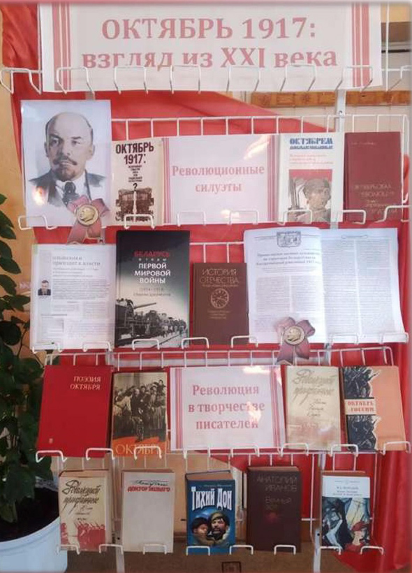 В Районном информационно-идеологическом центре в отделе обслуживания и информации Кричевской районной центральной библиотеки вниманию пользователей предложена книжная выставка «Октябрь 1917 года: взгляд из ХХI века», посвящённая событиям Октябрьской революции. На выставке представлена литература по истории революции, книги публицистического плана, отражающие исторические события, происходившие в октябре 1917 года, художественные произведения писателей и поэтов о революции.
