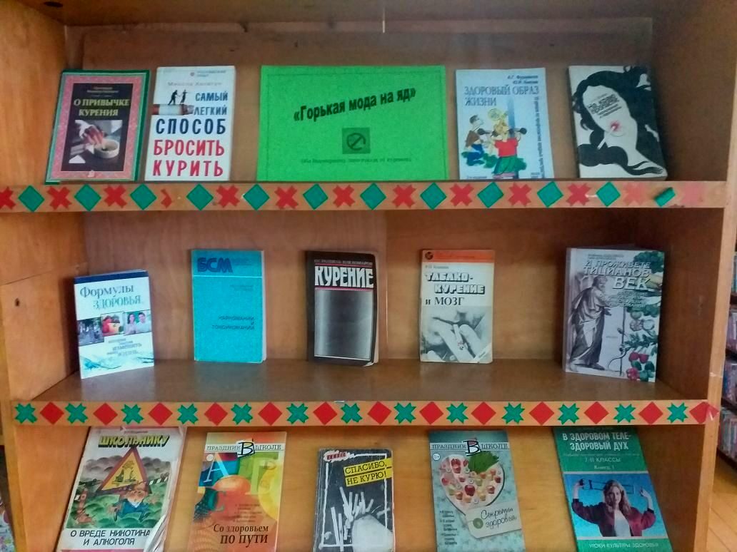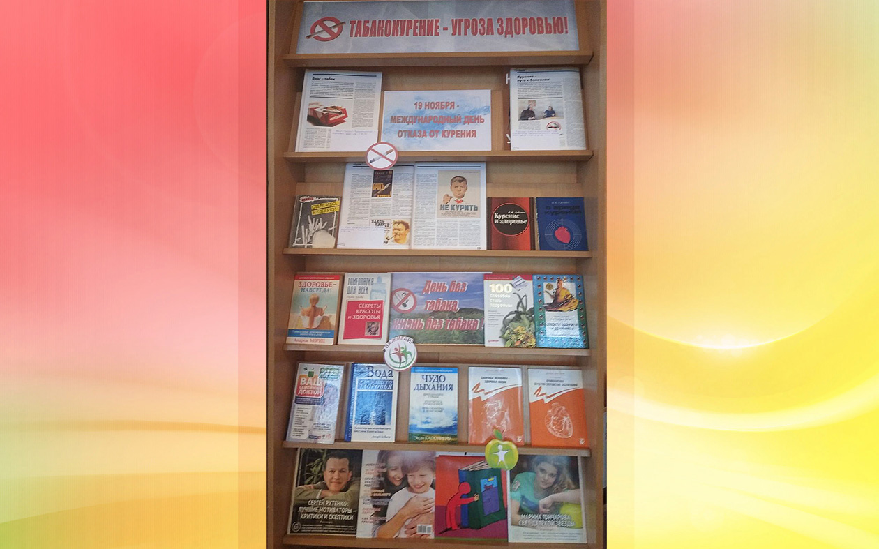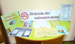 К Международному дню отказа от курения в районной детской библиотеке организована книжная выставка «Курение – вчерашний день! Сегодняшний – здоровье!». На выставке представлены книги и статьи из периодических изданий о вредном влиянии табака на здоровье человека, о вредных привычках и их профилактике, мерах, которые могут помочь в борьбе с распространением табакокурения.