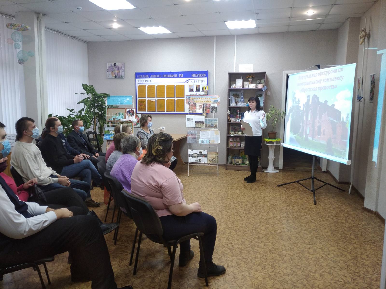 Для граждан с ограниченными физическими возможностями в отделении дневного пребывания для инвалидов районного центра социального обслуживания населения районный информационно-идеологический центр организовал виртуальную экскурсию по мемориальному комплексу «Брестская крепость-герой».