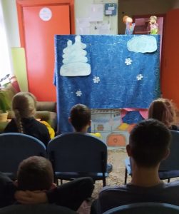 Во время осенних каникул городская библиотека № 1 для детей младшего школьного возраста СШ № 8 на пункте выдачи городской библиотеки № 1 поставила кукольный спектакль «По щучьему велению». Он стал яркой, живой и эмоциональной иллюстрацией книги! Ребята познакомились с главными сказочными героями: Емелей, Марьей-царевной, Щукой, Царем. Под музыкальное сопровождение вместе со сказочными персонажами ребята с удовольствием подпевали и переживали за дальнейшее развитие сказки.