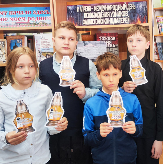 Библиотекарь рассказала о трагических событиях, имеющих место в таких концлагерях, как Освенцим, Дахау и Треблинка, а также о трагедиях белорусских лагерей смерти, таких как Тростенец, Озаричи и Красный Берег. Особое внимание было уделено судьбам детей, оказавшихся в эпицентре этих ужасных событий, и необходимости помнить о них, чтобы не допустить повторения исторических трагедий. Более подробно ребята ознакомились с историей Кричевского лагеря смерти, который действовал на территории цементного завода в период с 1941 по 1943 годы. Мероприятие завершилось минутой молчания, отданной в память о жертвах фашизма и обзором книжной выставки «Войной изломанные судьбы».