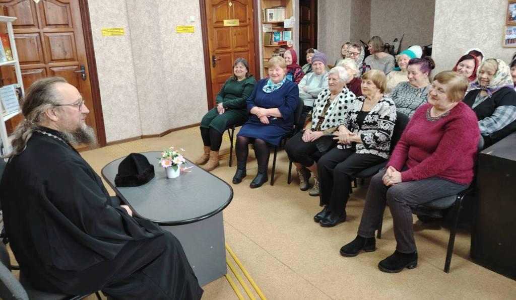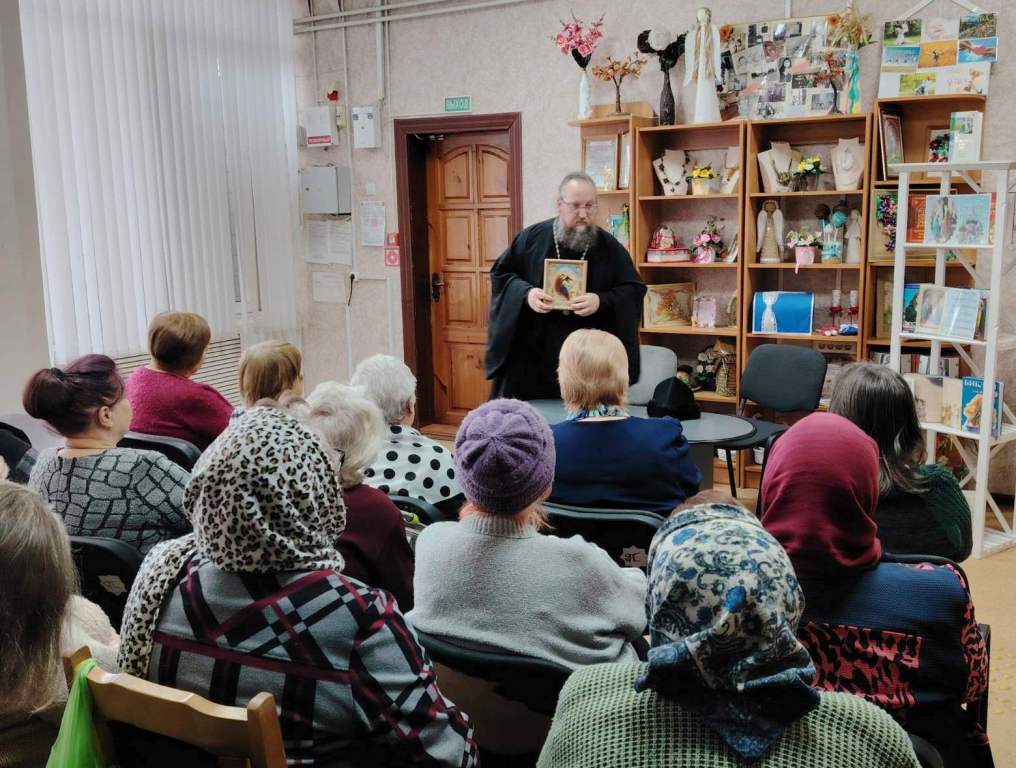 Сотрудники филиала «Городская библиотека № 1» совместно с настоятелем храма Воскресения Христова протоиереем Сергием Коростелевым провели час православной культуры «Сретение Господне: история, традиции и смысл православного праздника», для посетителей отделения реабилитации, абилитации инвалидов и дневного пребывания для граждан пожилого возраста Кричевского РЦСОН.