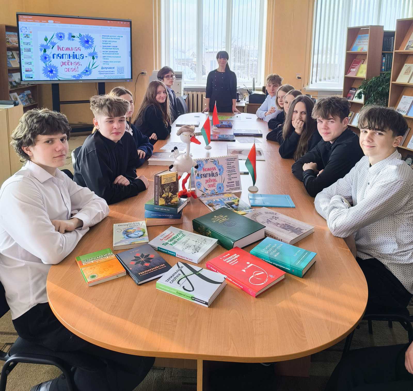 У рамках агульнанацыянальнага праекта «Кожная пятніца – роднае, сваё» супрацоўнікі цэнтральнай раённай бібліятэкі для вучняў 10 класаў сярэдняй школы №1 правялі інфармацыйна-пазнавальную гульню «Зроблена з годнасцю. Зроблена па-беларуску», прысвечаную дасягненням і перспектывам развіцця нашай краіны ў розных сферах жыццядзейнасці. Вучні адказвалі на пытанні гульні-віктарыны «Беларусь: гісторыя і сучаснасць». У межах мерапрыемства быў праведзены агляд кніжнай выставы «Пад мірным небам Беларусі», дзе былі прадстаўлены кнігі пра беларускія прадпрыемствы, якія вырабляюць якасную беларускую прадукцыю.