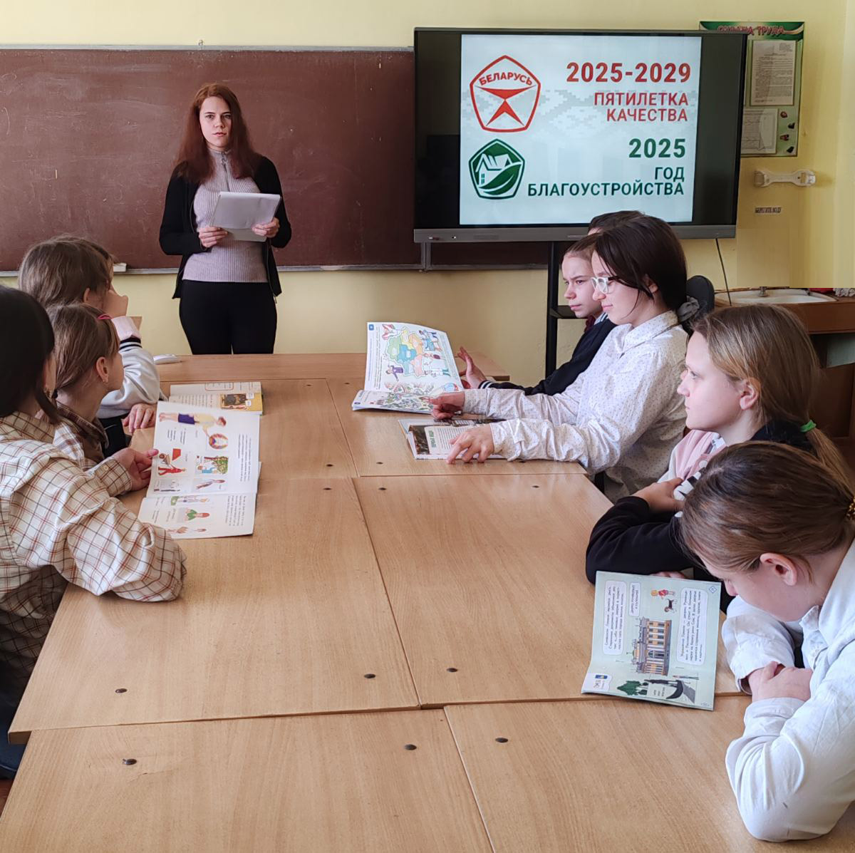 Для учащихся государственного учреждения образования «Костюшковичская средняя школа Кричевского района» сотрудник филиала «Костюшковичская сельская библиотека» провела час информации «Благоустройство страны – залог процветания Беларуси». Библиотекарь рассказала ребятам о том, что Президентом Республики Беларусь был подписан Указ об объявлении 2025 года Годом благоустройства, а также определена цель для дальнейшего повышения качества жизни белорусов. Учащиеся обсудили значения понятия «качество», «благоустройство» и его составляющие, обменялись мнениями, что нужно сделать для развития и благоустройства своего родного агрогородка. Мероприятие сопровождалось просмотром видеосюжетов «Год благоустройства» и «Пятилетка качества».