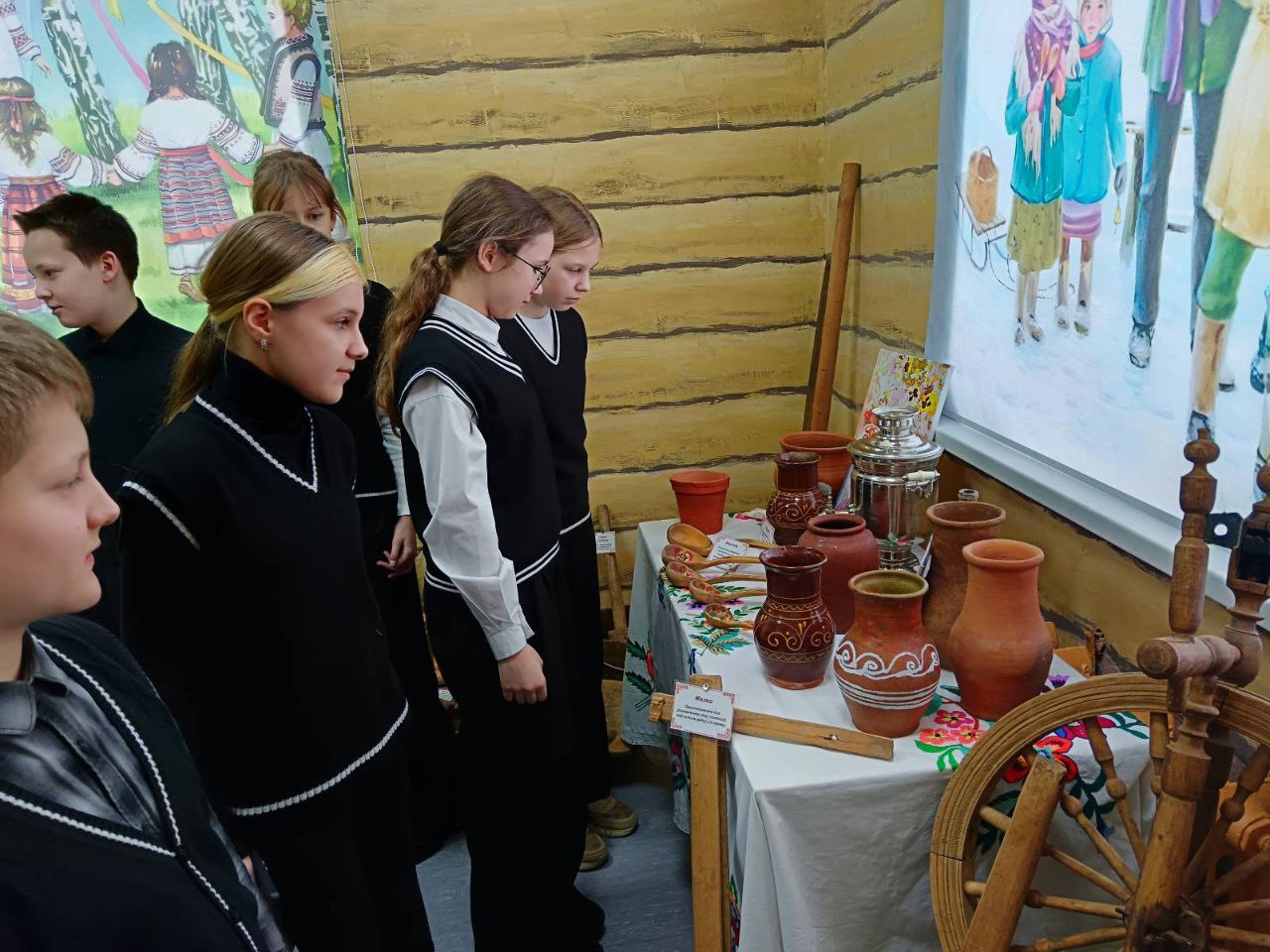 У ходзе экскурсіі ўдзельнікі мелі магчымасць азнаёміцца з макетам беларускай хаты і вывучыць яе элементы інтэр’еру, уключаючы стол з самаварам, посуд і прылады ткацтва. Таксама была прадстаўлена калекцыя нацыянальнай адзення.